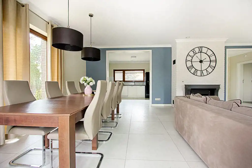 Ten komfortowy, pięknie zaaranżowany dom za miastem to propozycja dla poszukujących wyjątkowej i nowoczesnej przestrzeni do wprowadzenia.