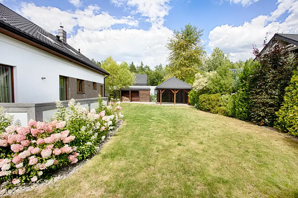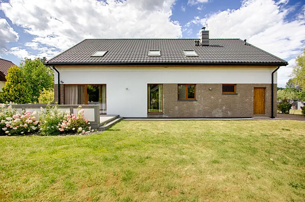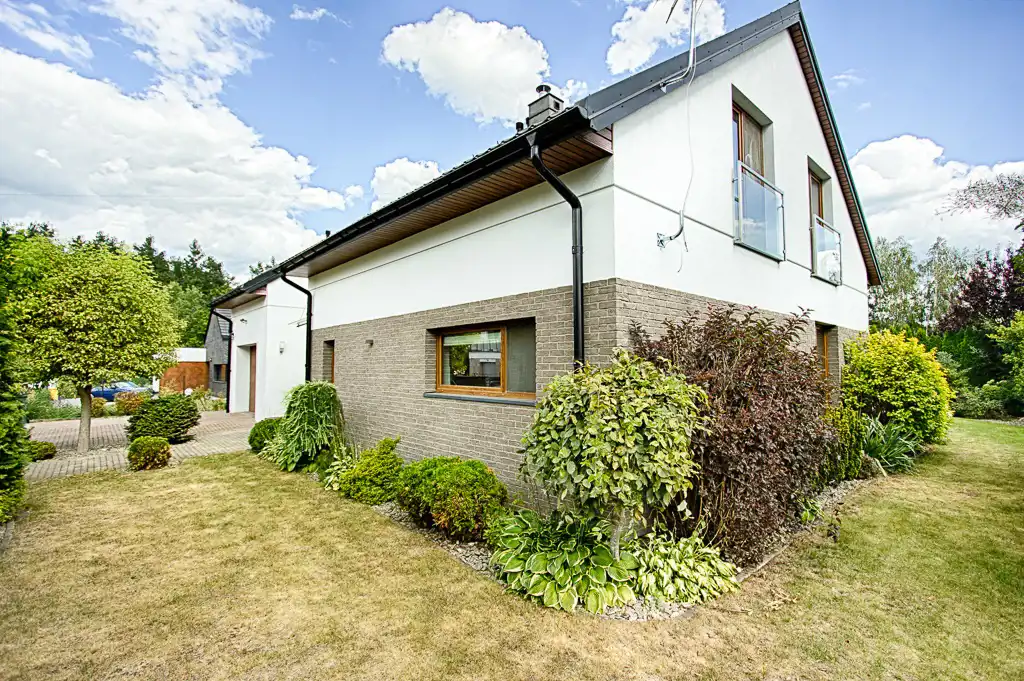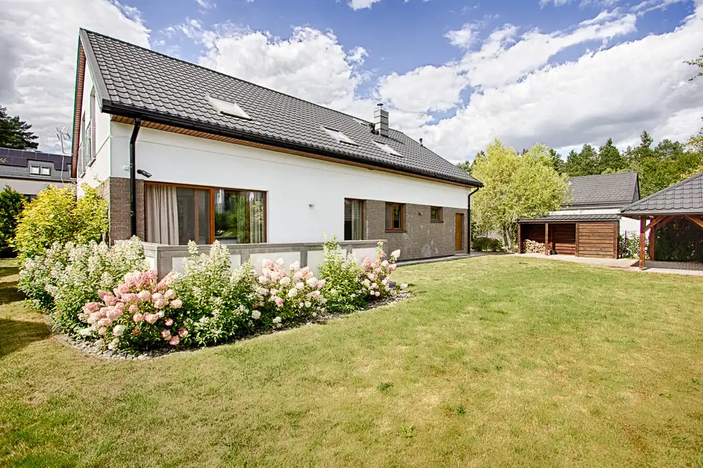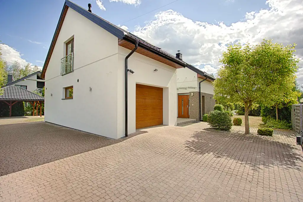 Budynek parterowy z użytkowym poddaszem o prostej bryle oraz powierzchni użytkowej 240,62 m2 obejmującej 2 kondygnacje - w tym jednostanowiskowy, przestronny garaż. Prosty i elegancki z zewnątrz. Wnętrze domu to przede wszystkim komfortowa i funkcjonalna przestrzeń oraz spójna aranżacja naturalnie doświetlona dzięki licznym przeszkleniom. Nieruchomość umeblowana i wyposażona w niezbędne sprzęty.