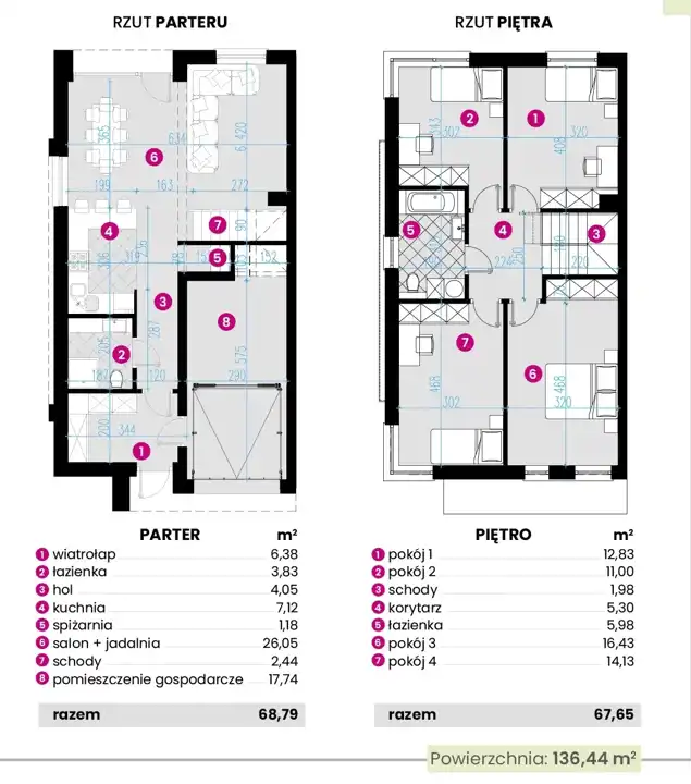 Na powierzchnię użytkową 136,44m2 składają się