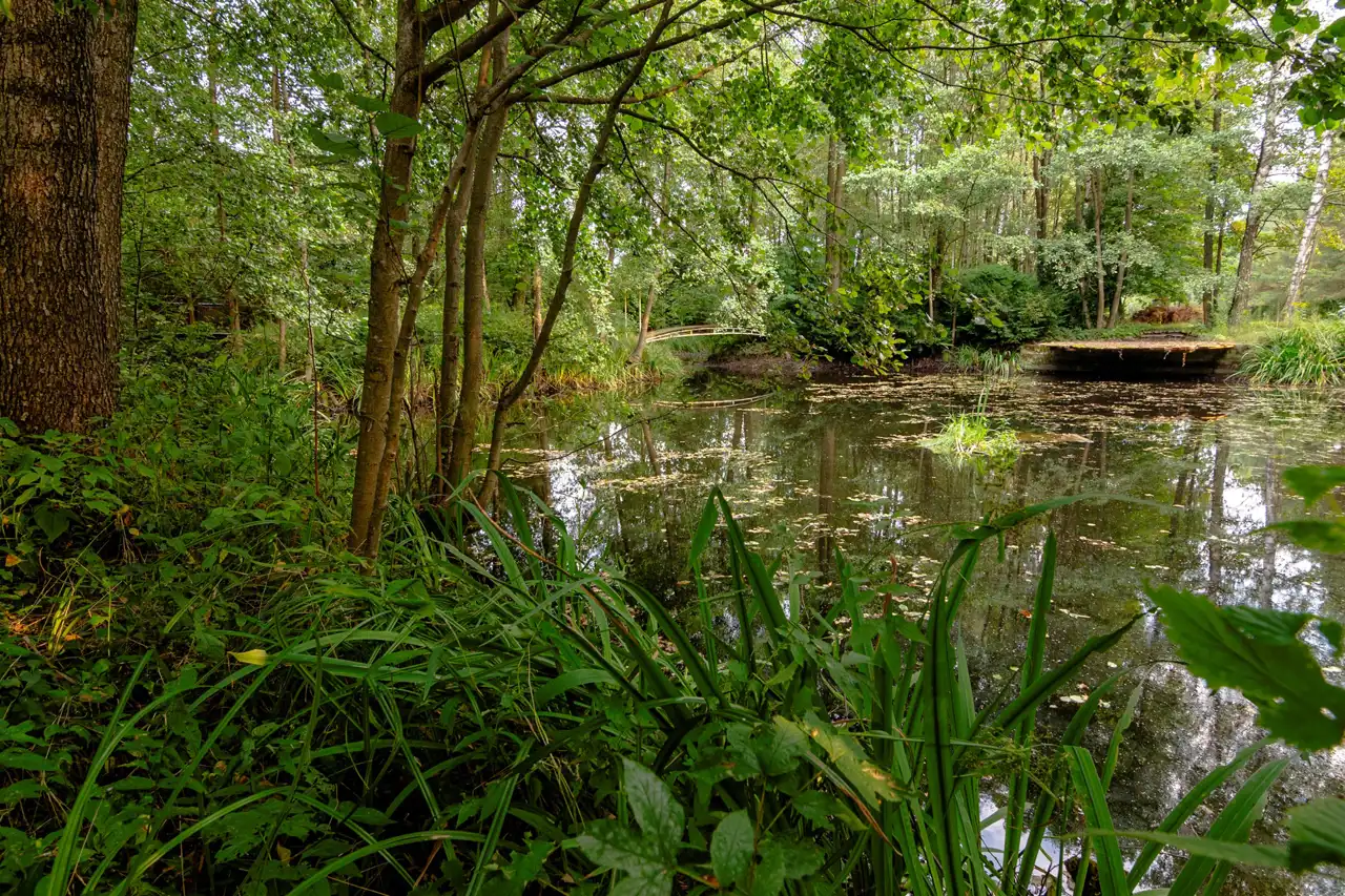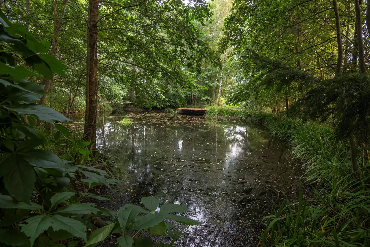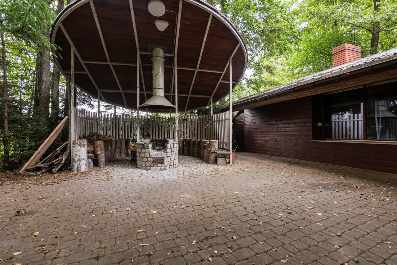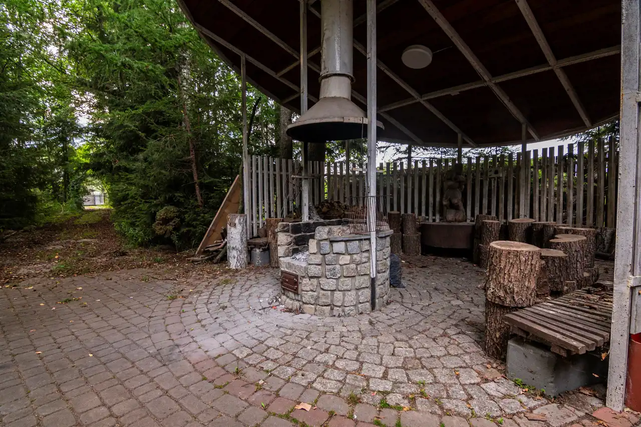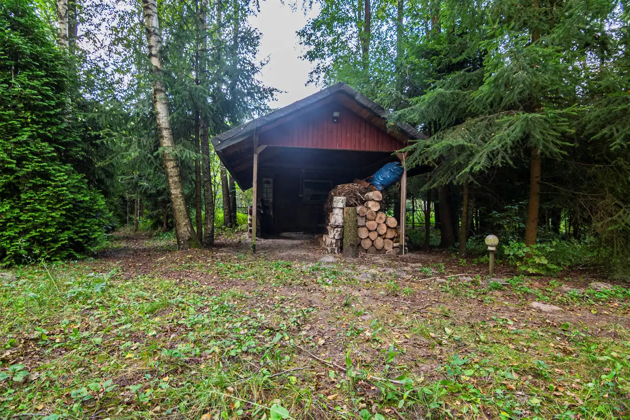 Na działce znajduje się spory staw o powierzchni około 900m2 z dwoma drewnianymi mostkami. Przy stawie zlokalizowana jest kamienna grillowania z zadaszeniem oraz drewniany budynek jednokondygnacyjny o funkcji mieszkalnej I pow. zabudowy 51 m2. W okolicy stawu znajduje się także budynek gospodarczy jednokondygnacyjny konstrukcji drewnianej pow. zabudowy 27m2.