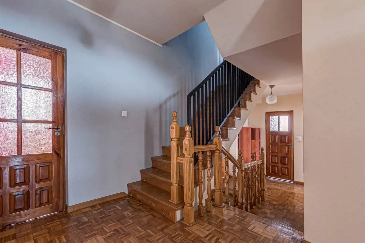 Wszystkie pomieszczenia w budynku zostały wykończone. W większej części pomieszczeń zastosowano materiały wysokiej klasy. Budynek przeszedł sukcesywny remont. W całym domu zastosowano stolarkę okienną PCV. budynek wyposażony jest w następujące instalacje: elektryczna, wodno-kanalizacyjna, Dom ogrzewany jest piecem na paliwo stałe - ecogroszek, pelet. W budynku zauważalne są ślady eksploatacji i zużycia. Ściany wymagają odświeżenia. Budynek posiada układ pomieszczeń, który przy pewnych modernizacjach pozwoli na wydzielenie dwóch lokali mieszkalnych.