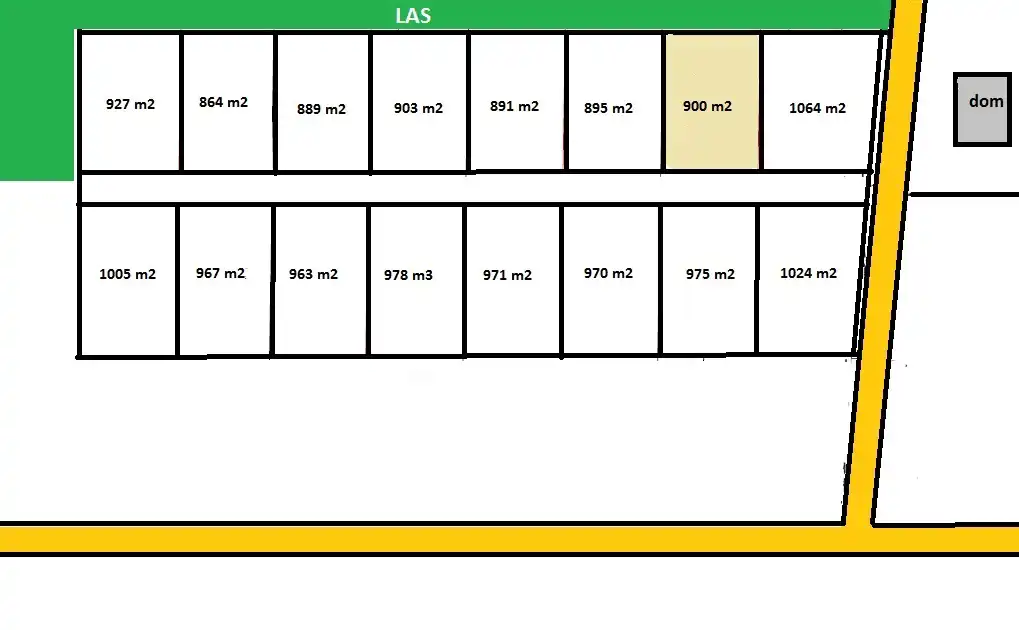 Działka w trakcie wydzielania z większej działki (łącznie 16 działek).