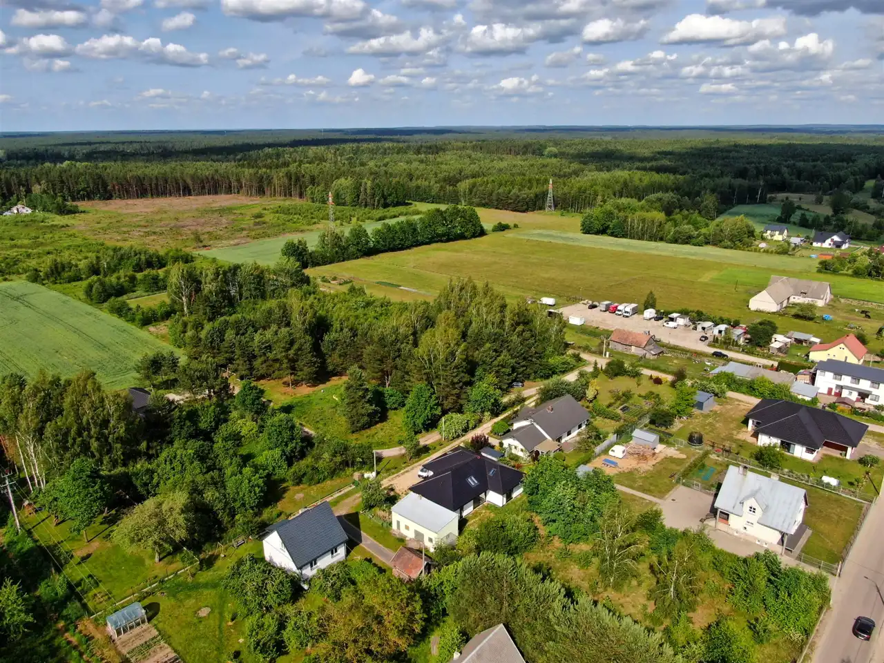 Gotowa infrastruktura – prąd dostępny w przyległej drodze oznacza szybkie i bezproblemowe podłączenie mediów.