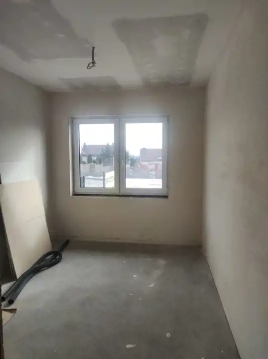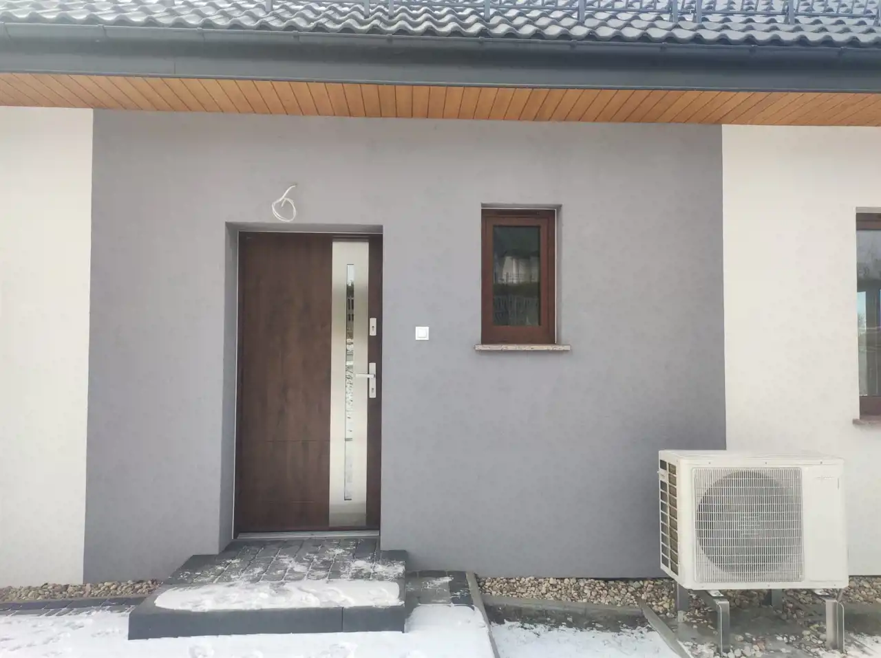 Dom wykonany z betonu komórkowego o grubości 24cm, dach pokryty dachówką betonową BRAAS, tynk silikatowo-silikonowy, tynki wewnętrzne gipsowe(nie wymagają gładzi). W nieruchomości wykonano instalację elektryczną, wodno-kanalizacyjną oraz centralnego ogrzewania. Ogrzewanie-pompa ciepła Wiessmann.