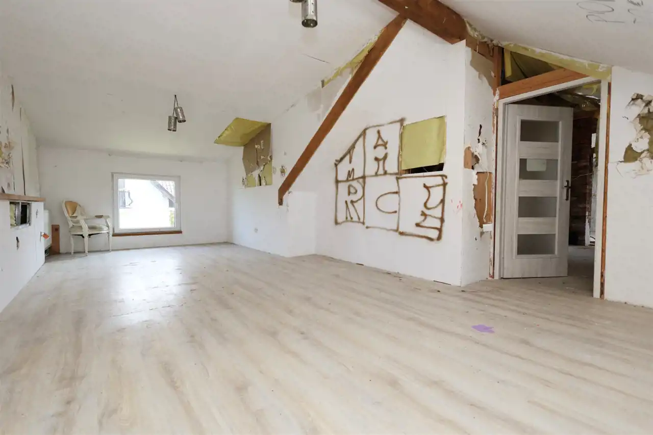 W trakcie prac remontowych został wykonany nowy dach wraz z więźbą i dociepleniem, wstawiono wszystkie okna na pcv , na ścianach zewnętrznych wykonano docieplenie.