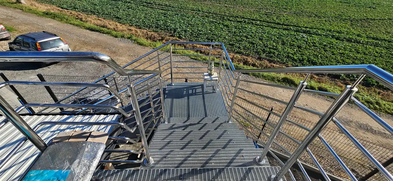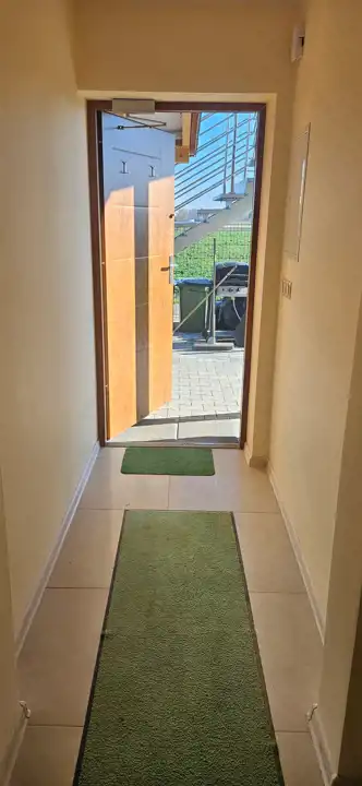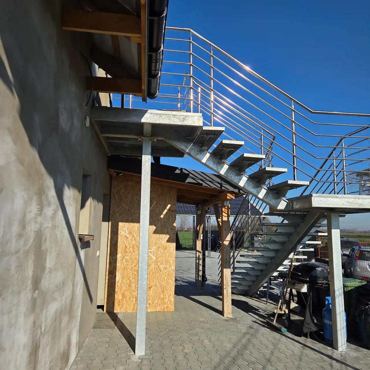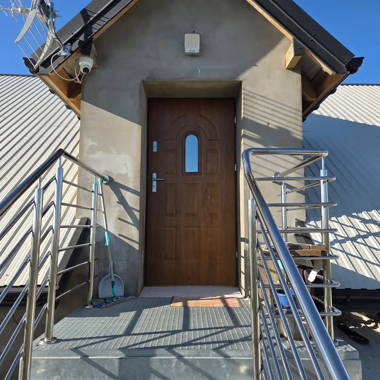 Każdy poziom na osobne wejście do budynku, na piętro prowadzą nowe, solidne, metalowe schody.