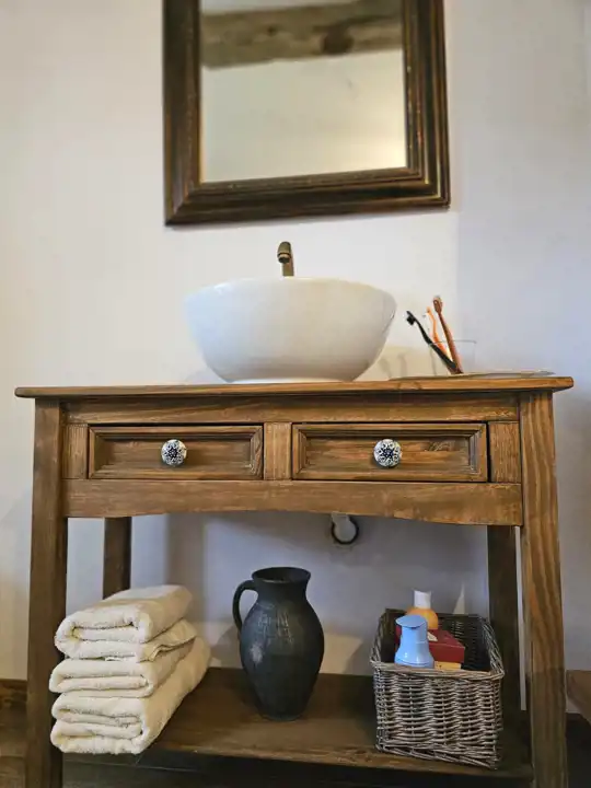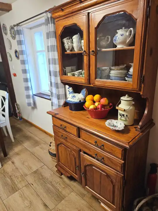 • W domu znajduje się piec kaflowy, stanowiący doskonałe źródło ciepła i nadający wnętrzu wyjątkowy, tradycyjny charakter.