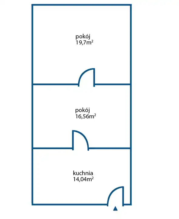 Składa się z z pokoi o powierzchniach 19,70 m² i 16,56 m² oraz kuchni o powierzchni 14,04 m².