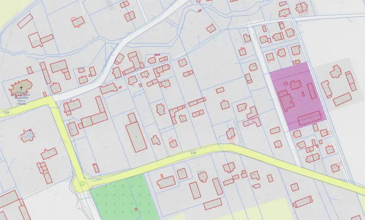 - Pow. zabudowy: 395m2, 294m2, 168m2, 96m2, 20m2 oraz 17m2.