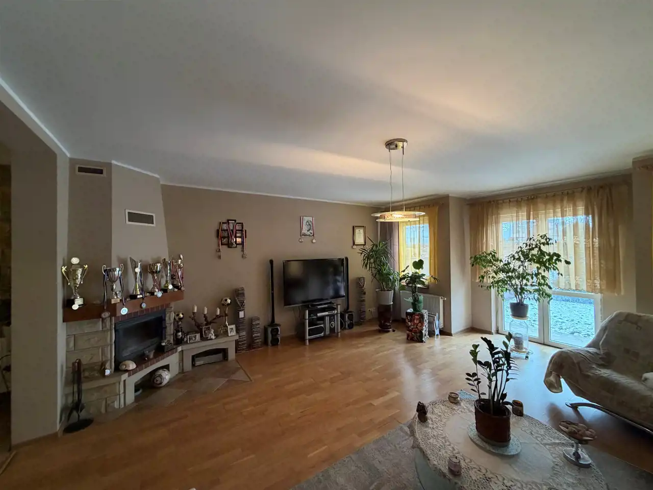 Okna PCV. W domu funkcjonuje także kominek służący jako dodatkowe źródło ogrzewania.