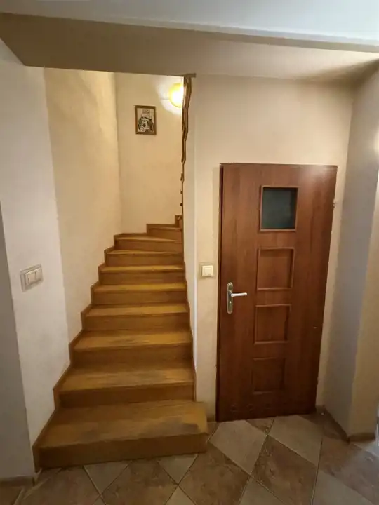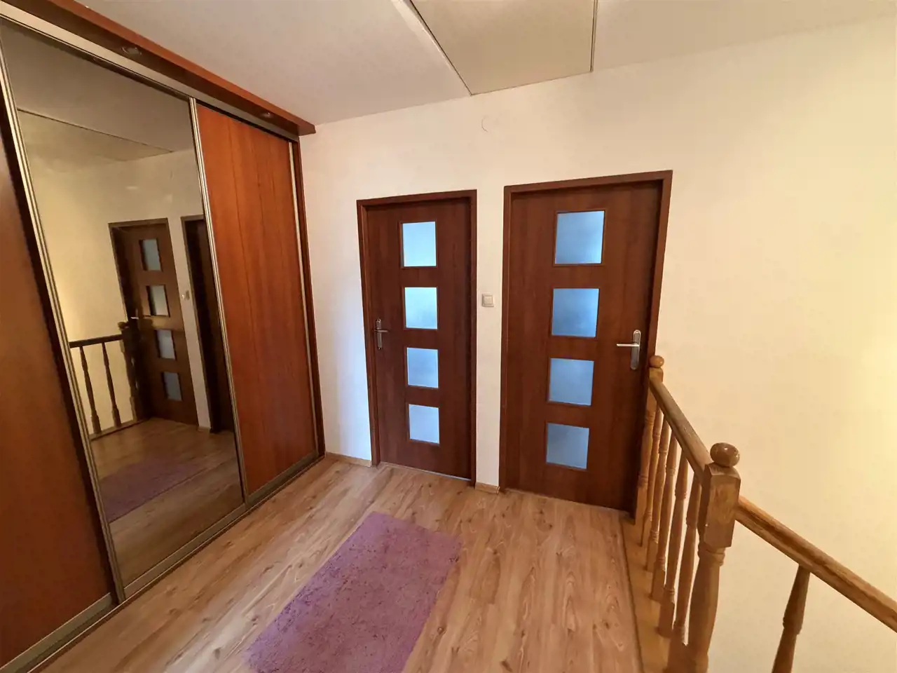 Piętro: hol, łazienka oraz trzy pokoje.