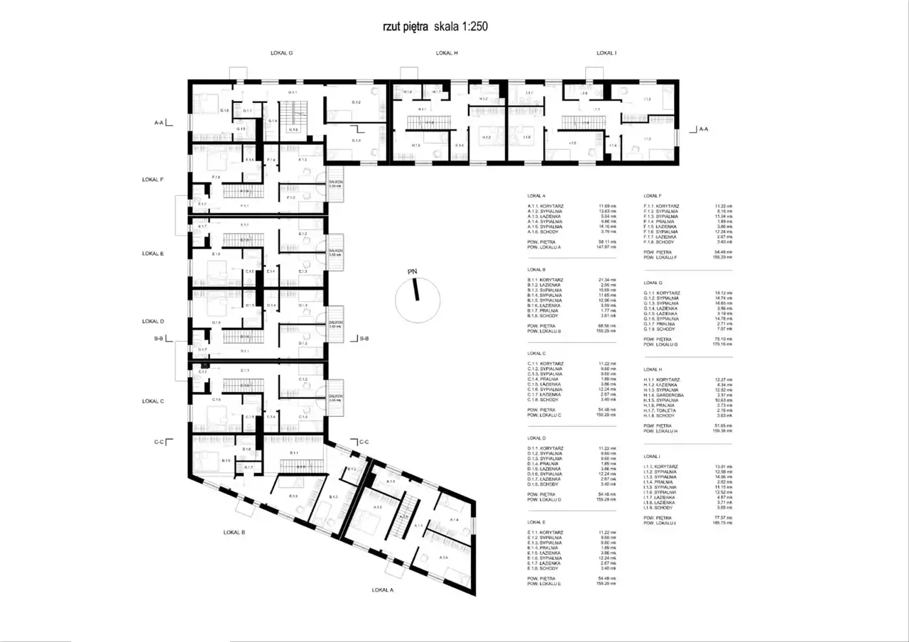 - w każdym segmencie 3 sypialnie, 1 segment z 4 sypialniami,