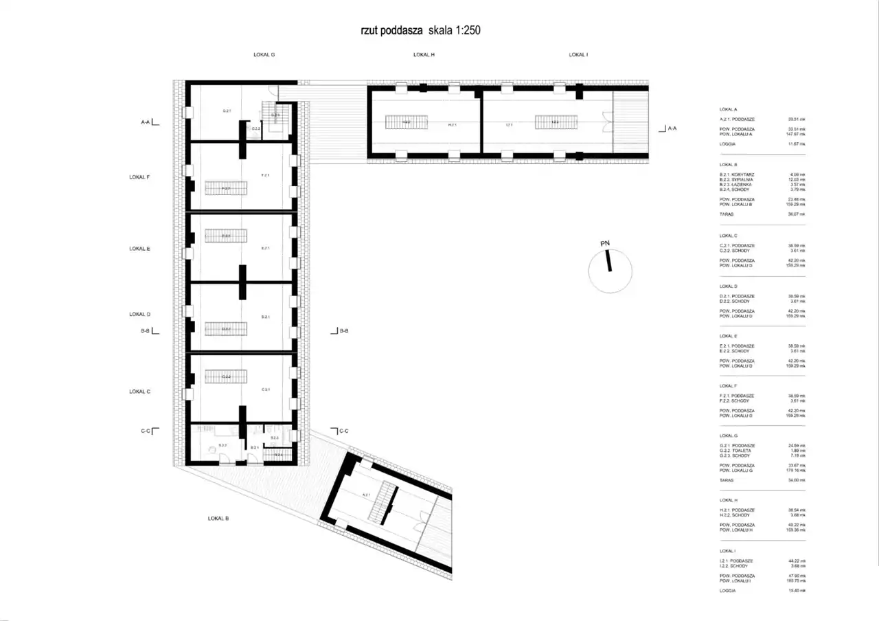 - segmenty 3-kondygnacyjne: parter, piętro i poddasze użytkowe (z klatką schodową),