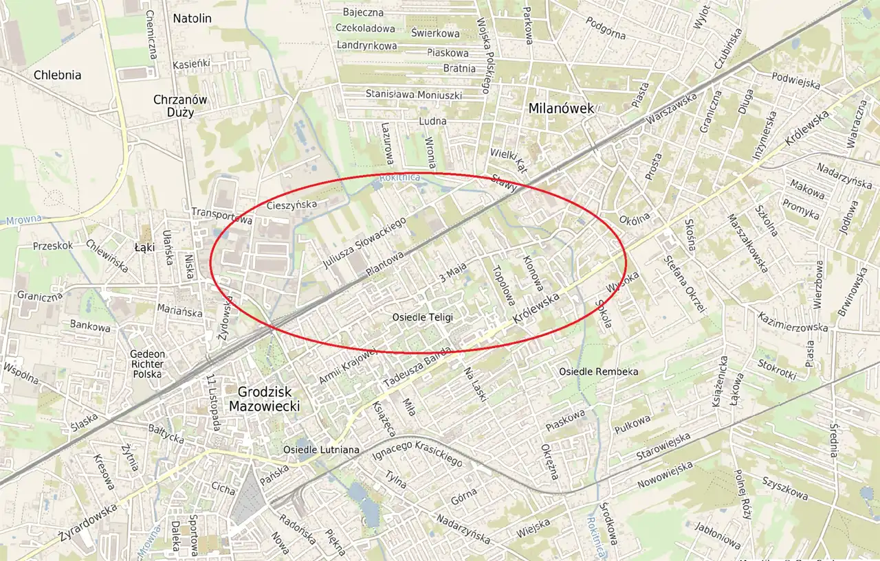 Odległość od stacji PKP Grodzisk Mazowiecki - ok. 2 km.