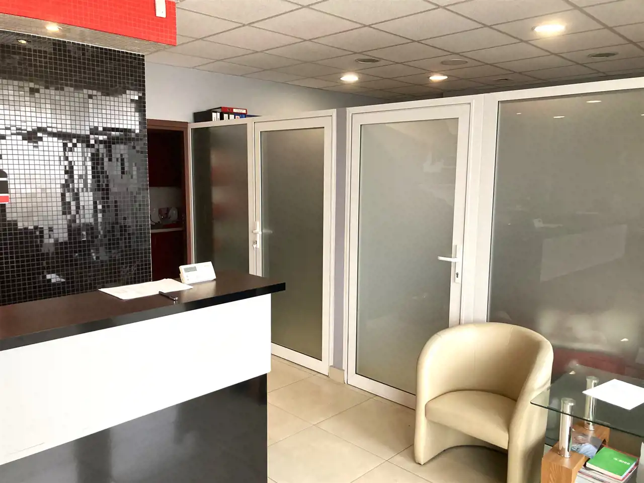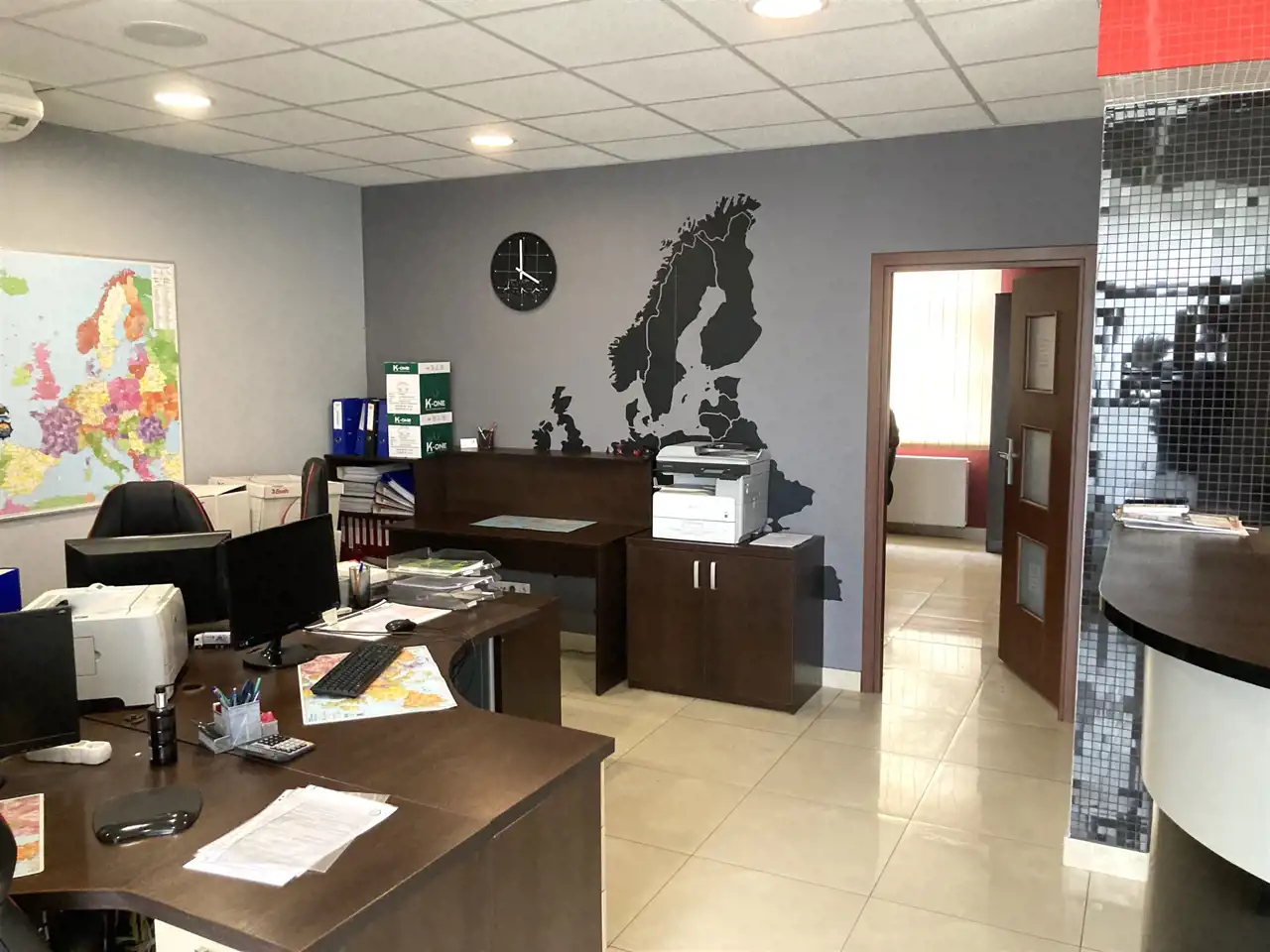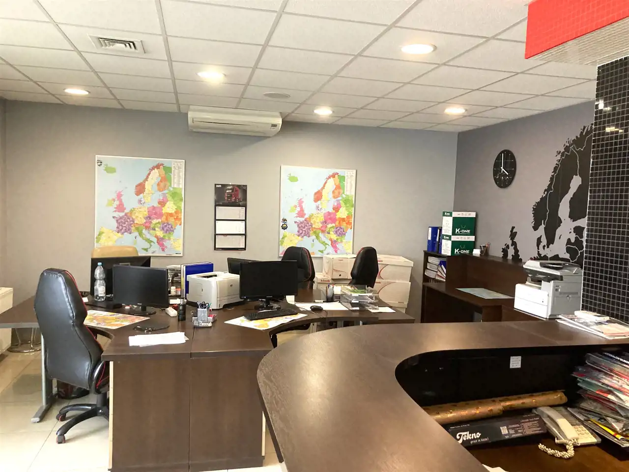 Biuro w pełni urządzone i wykończone w wysokim standardzie, gotowe do prowadzenia działalności.