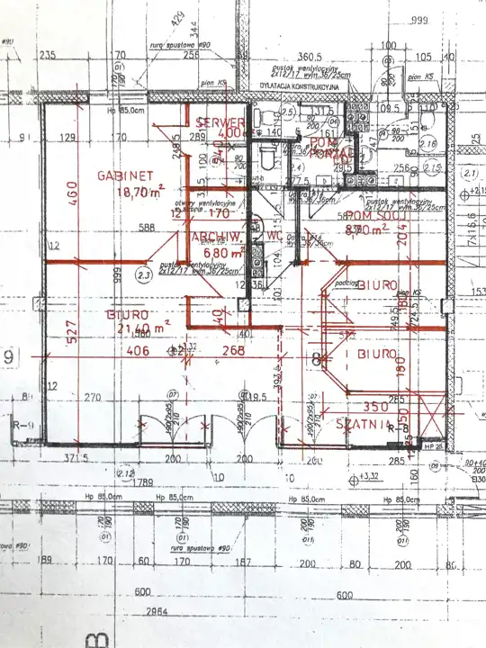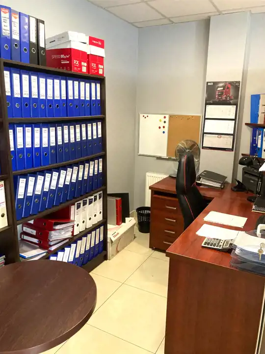 W skład wchodzi 5 oddzielnych pomieszczeń biurowych, recepcja, serwerownia, archiwum, przestronne pomieszczenie socjalne, dwa W.C. oraz pokój gospodarczy.