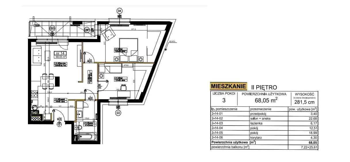 - Charakterystyka mieszkania 68.05 m2, 3 pokoje