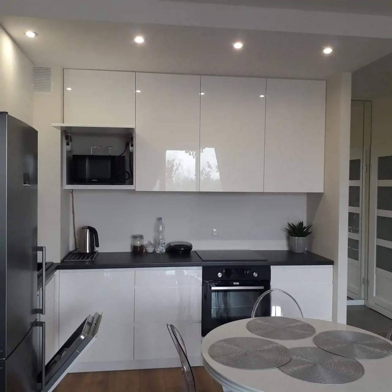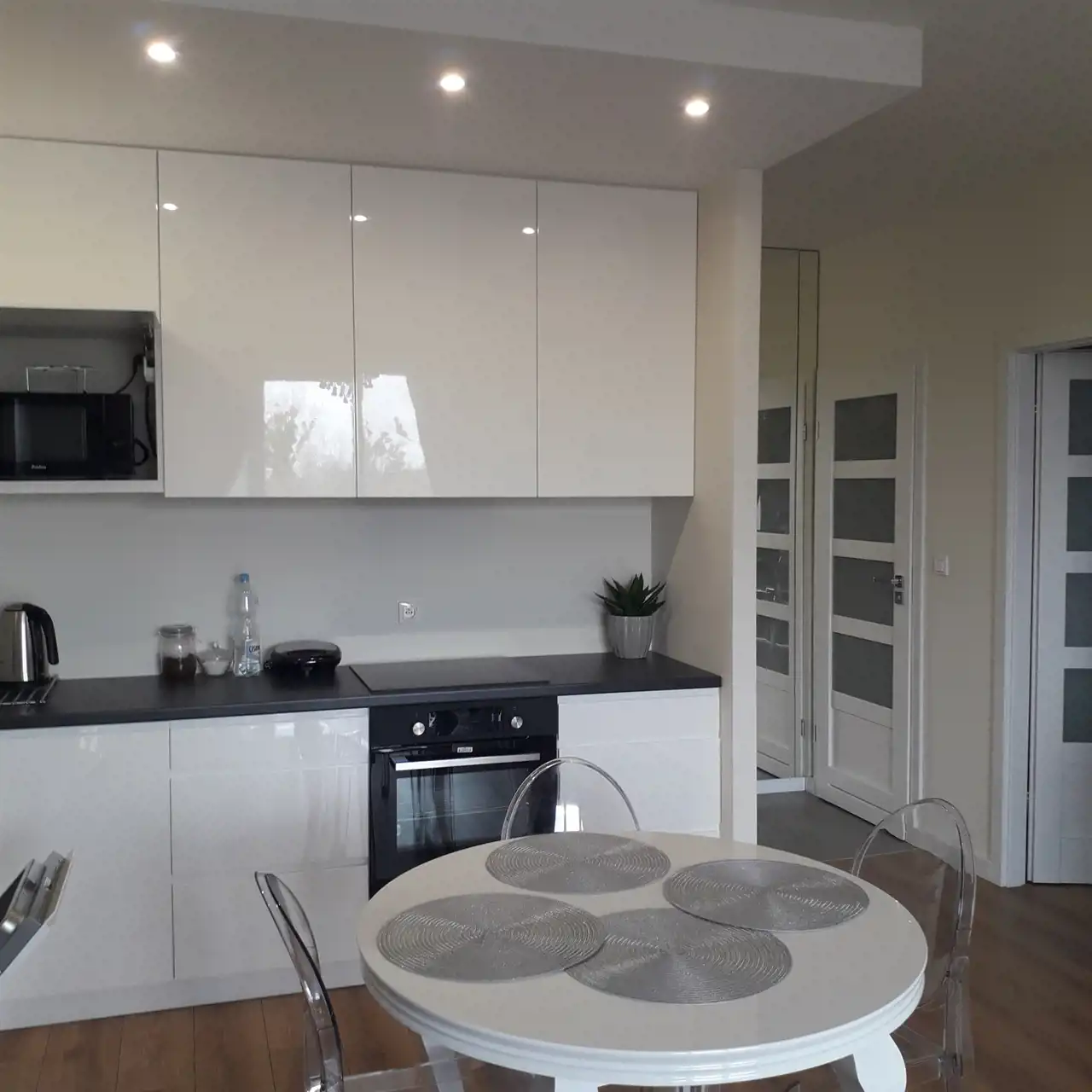 Mieszkanie jest w pełni umeblowane i wyposażone w sprzęty AGD i RTV ( lodówko-zamrażarka, zmywarka, okap, pralka ,piekarnik, płyta indukcyjna, telewizor, niezbędne naczynia stołowe, sztućce ) oraz klimatyzację .