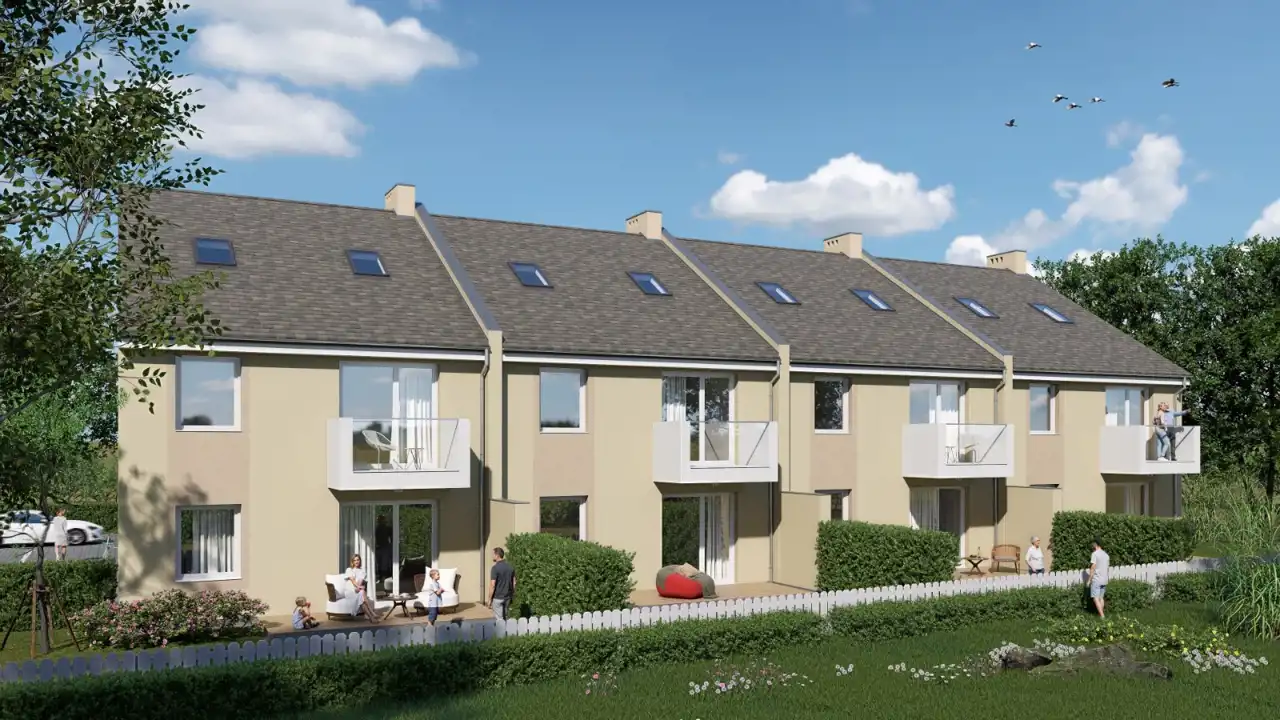 Powstające mieszkania w Słocinie to dwulokalowe budynki mieszkalne jednorodzinne w zabudowie szeregowej. W ramach inwestycji zaprojektowano 4 budynki, z których każdy składa się z dwóch mieszkań: parter: 75,40 m2 oraz piętro: 122,83 m2 w tym antresola o pow. 39,23 m2 ( możliwość wydzielenia dodatkowej łazienki oraz garderoby).