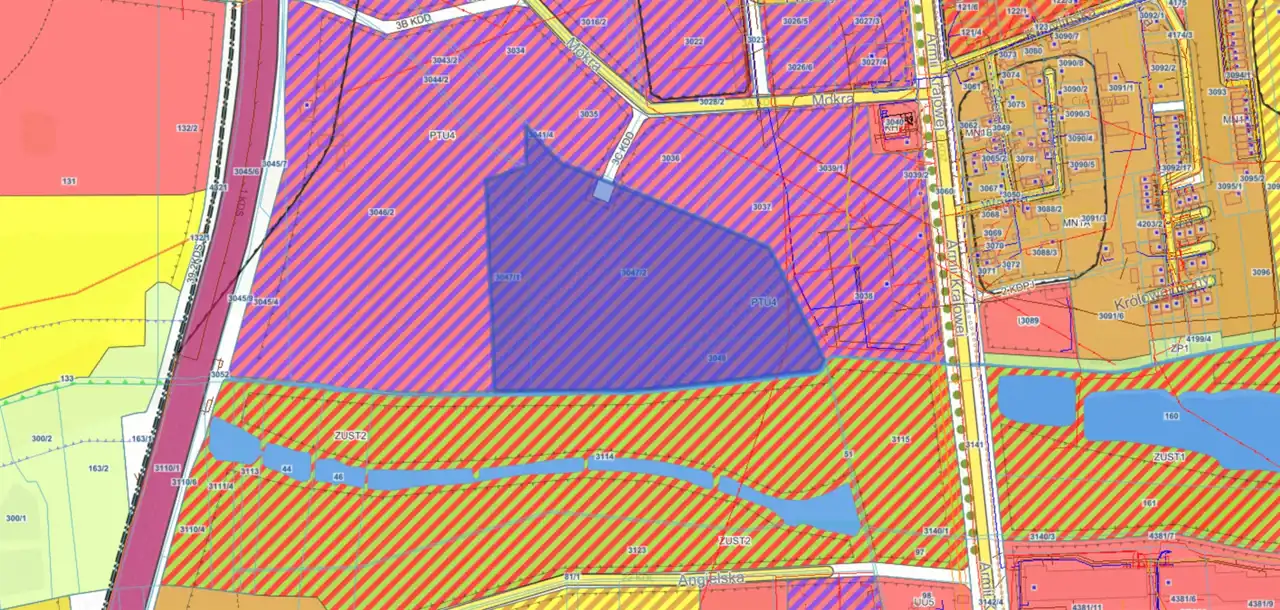 Mam do zaoferowania budowlaną w okolicy ulicy Angielskiej. Teren działki został objęty miejscowym planem zagospodarowania przestrzennego z przeznaczeniem: