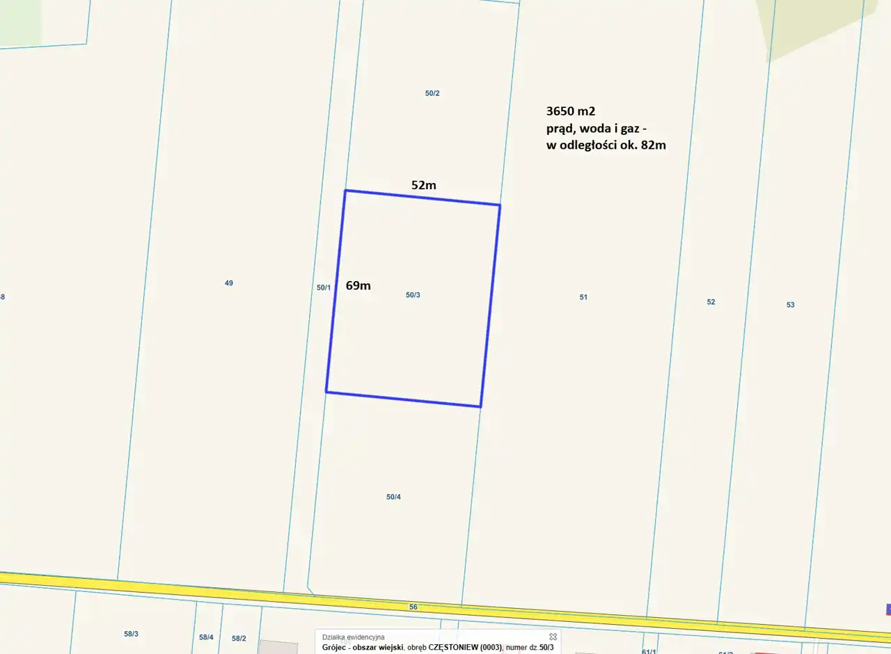 - Media Woda: w ulicy; Kanalizacja: brak; Prąd: w ulicy; Gaz: w ulicy
