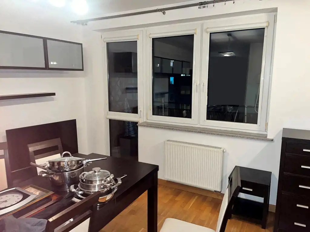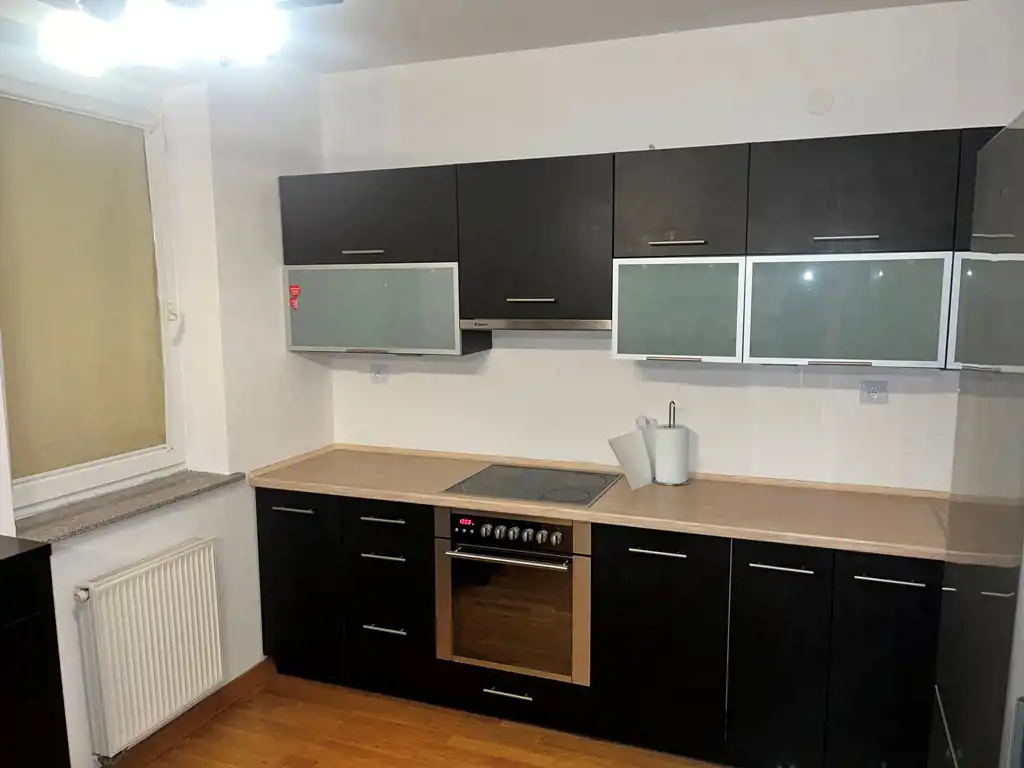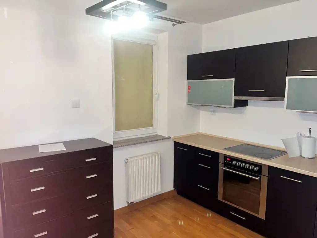 W łazience dostępna kabina prysznicowa. Kuchnia w pełnej zabudowie ze sprzętem AGD. W pokoju na podłodze parkiet dębowy.