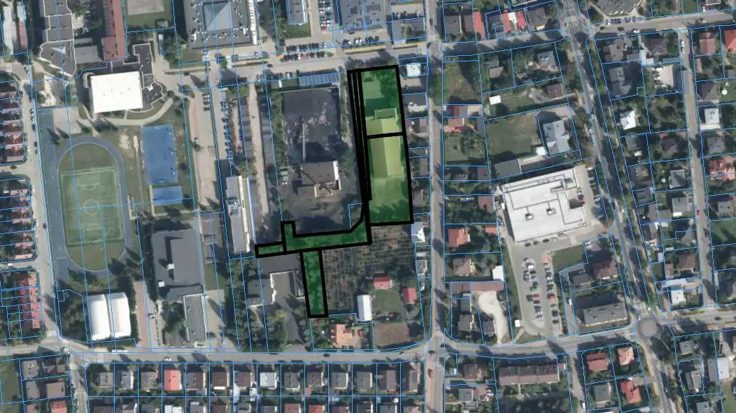 Grunt oznaczony jest numerami ew. 3499/4, 3499/1, 3499/6, 3499/3, 3499/11, 3488/6, 3500/15 o łącznej powierzchni 0,6026ha.