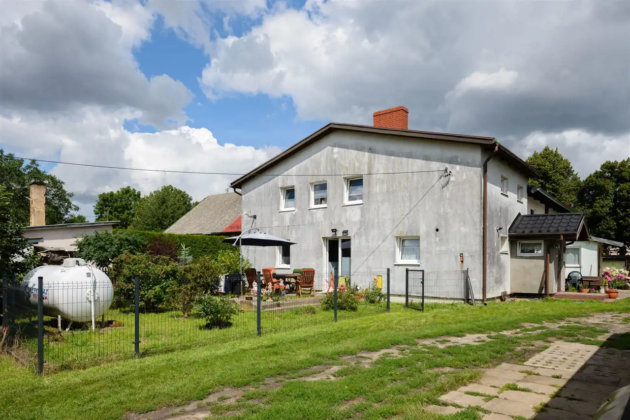 Nieopodal Elbląga, w niewielkiej ale jakże urokliwej miejscowości, Gronowie Elbląskim znajduje się nieruchomość gotowa do zamieszkania od razu. Pół domu o powierzchni użytkowej około 100 m ² znajduje się na ogrodzonej działce o wielkości 2 arów a kolejna przylegająca działka posiada 8 arów która może posłużyć do planów inwestycyjnych. Na parterze znajduje się obszerny salon z którego wyjdziemy na taras, wraz z aneksem kuchennym.