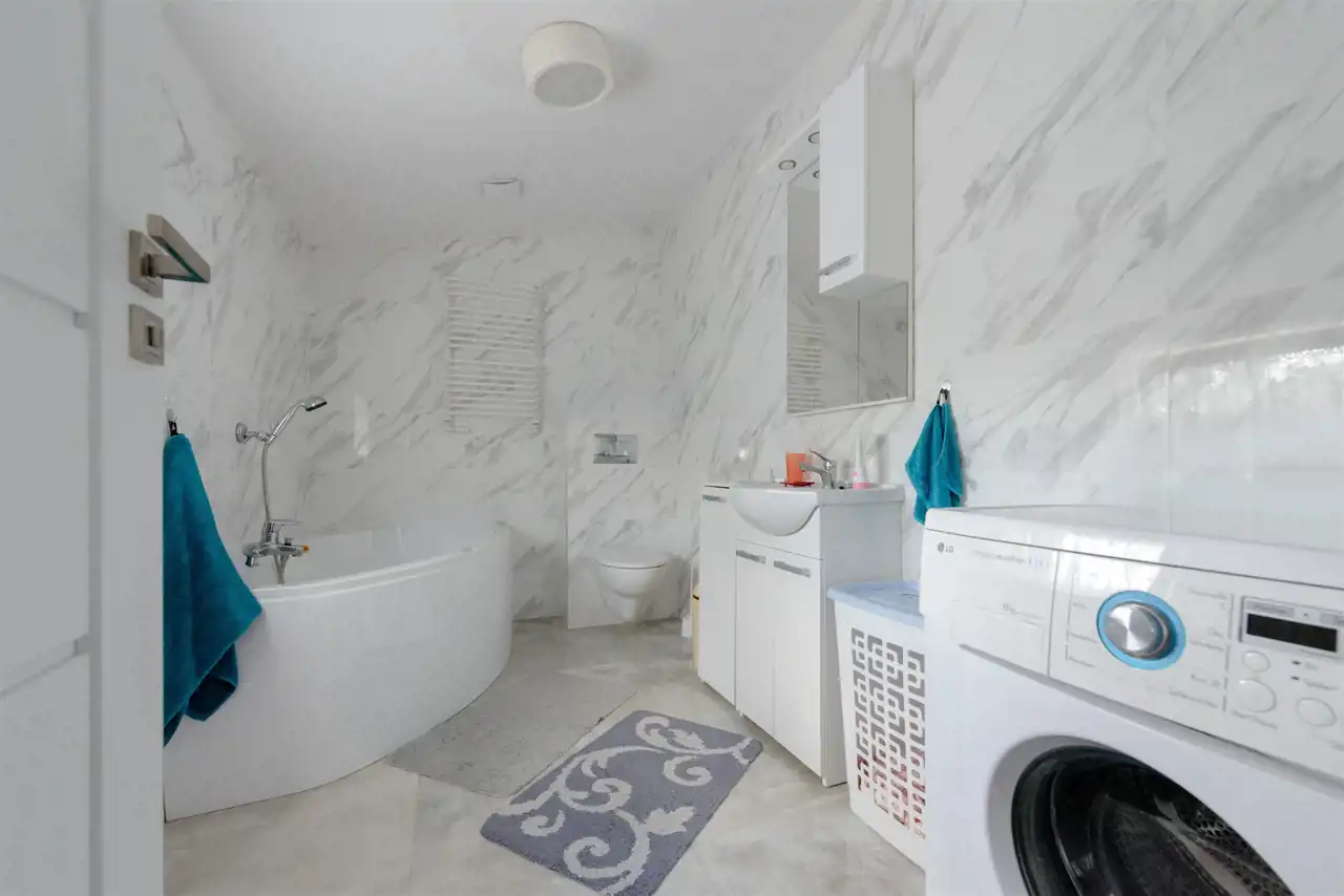 Na tej kondygnacji znajduje się również sypialnia oraz łazienka z prysznicem. Piętro składa się z dwóch sypialni oraz łazienki z obszerną wanną. Nieruchomość została gruntownie wyremontowana w latach 2022-2023, więc nowy właściciel uniknie kosztownych długotrwałych remontów.