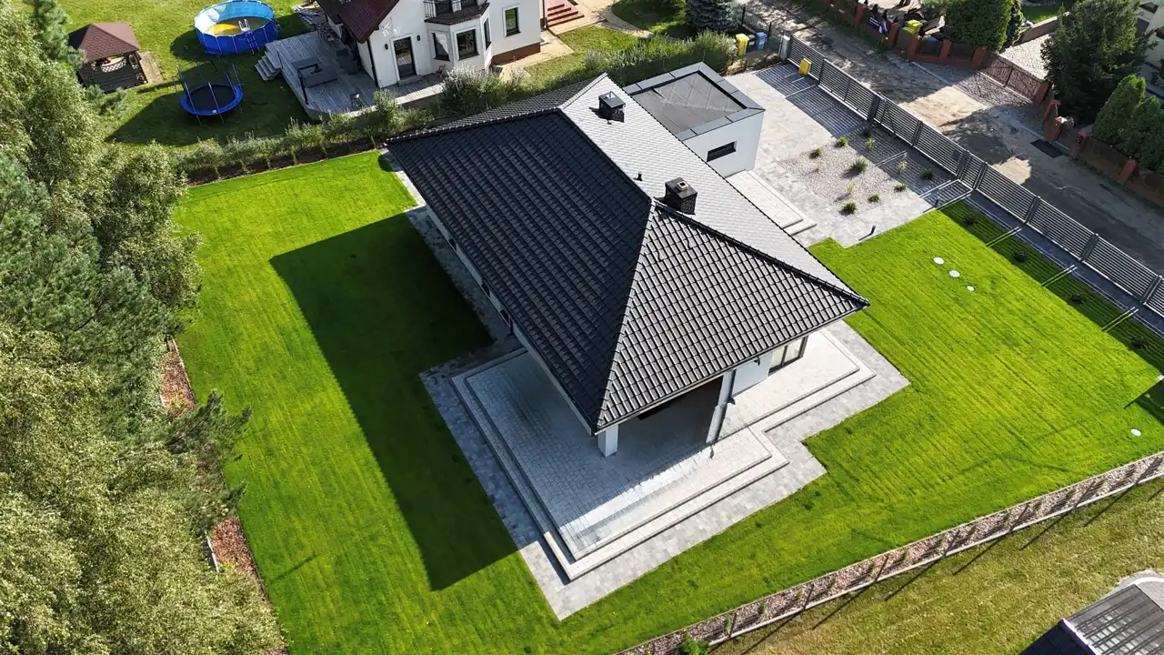 Dach pokryty dachówką ceramiczną ROBEN (grafitowa) – trwałość i estetyka.