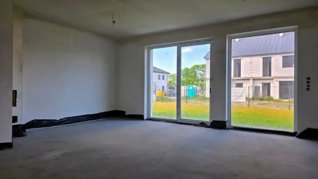 - Drzwi wewnętrzne: otwory przygotowane do montażu ościeżnic i drzwi, ościeża nietynkowane.