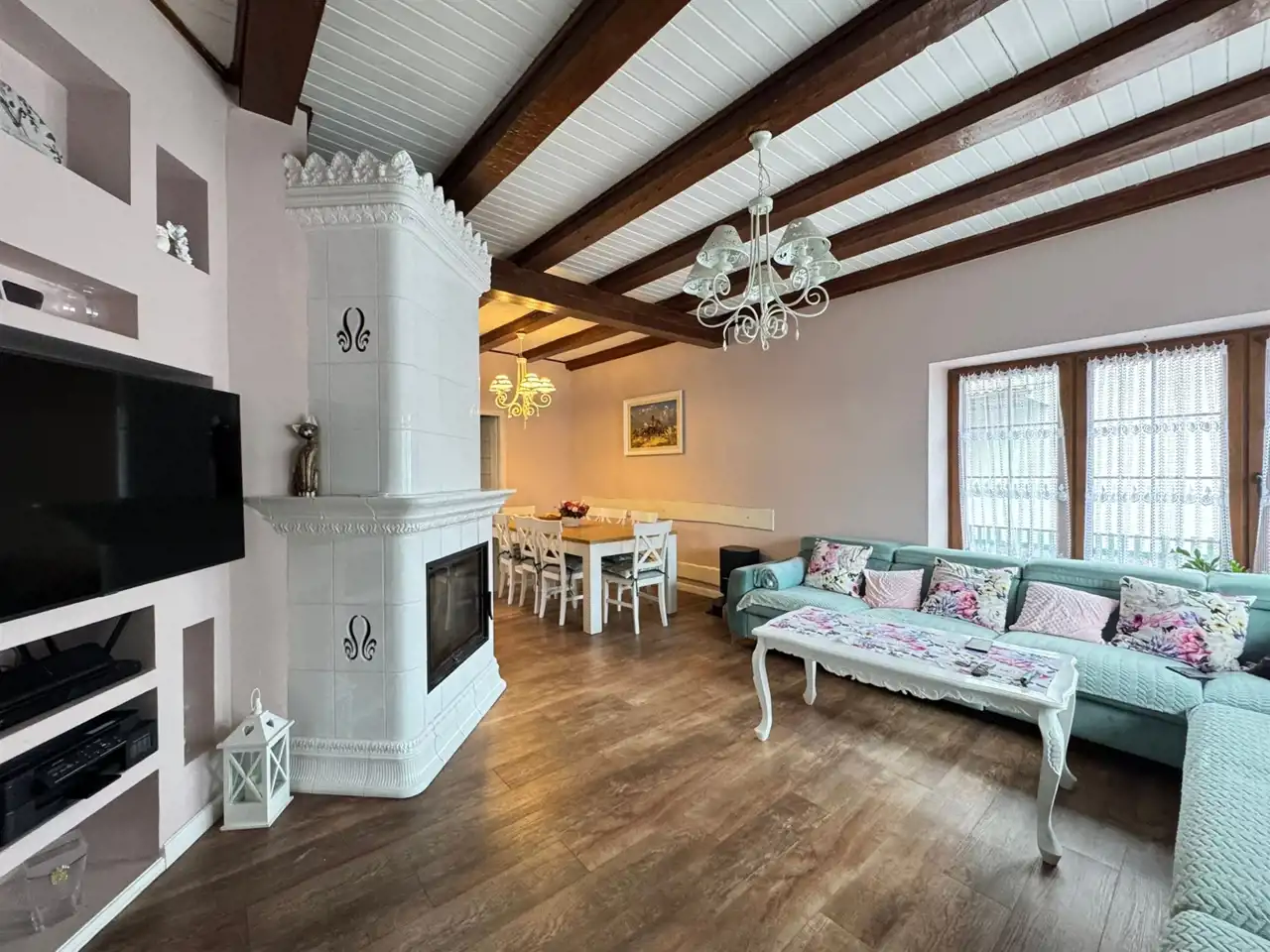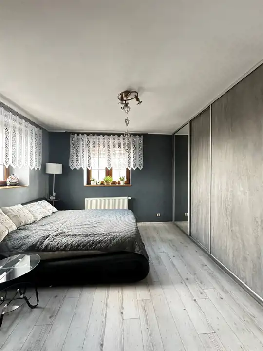 Dom został zaprojektowany z myślą o funkcjonalności i komforcie codziennego życia. Na ścianach znajdują się gładzie, na podłogach panele i kafle, a parapety wykonano z drewna, co nadaje wnętrzom ciepła i klasy. W całym domu rozprowadzono nowe instalacje elektryczne, a do dyspozycji mieszkańców jest nowoczesne, ekonomiczne ogrzewanie powietrzną pompą ciepła dodatkowo piec miałowy oraz klimatyczny kominek z szamotem. Okna PCV oraz rolety zewnętrzne na parterze zapewniają ciszę i prywatność, a brama wjazdowa na pilota dodaje codziennej wygody.Dach pokryty gontem.