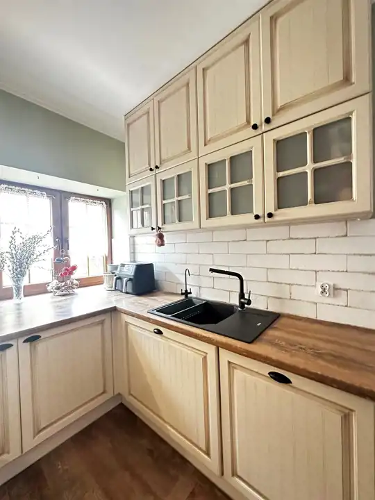W cenie domu pozostają wszystkie zabudowy stałe, co oznacza, że nowi właściciele nie muszą martwić się o dodatkowe koszty umeblowania. W pokojach oraz w przedpokoju znajdują się pojemne szafy w zabudowie, które zapewniają wygodne przechowywanie i porządek. W kuchni pozostaje nowoczesna zabudowa meblowa wraz ze sprzętami AGD, takimi jak lodówka, piekarnik, płyta grzewcza oraz zmywarka – wszystko gotowe do użytku od razu po wprowadzeniu.