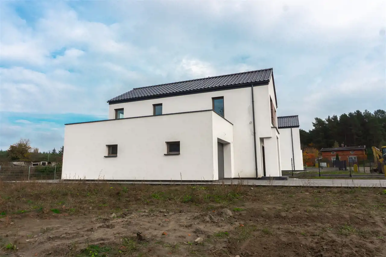 Biur nieruchomości Magdalena Sokołowska ma przyjemność zaprezentować nowoczesny, wolnostojący dom o powierzchni użytkowej 127,43 m2 (powierzchnia całkowita wraz z garażem wynosi 167,02 m2). Nieruchomość położona jest w spokojnej okolicy, w miejscowości Linarczyk, zaledwie 500 m od granicy Grudziądza. Dom znajduje się na ogrodzonej działce o powierzchni 1255 m2. Niewątpliwym atutem jest jego położenie- widok na staw oraz tereny zielone.