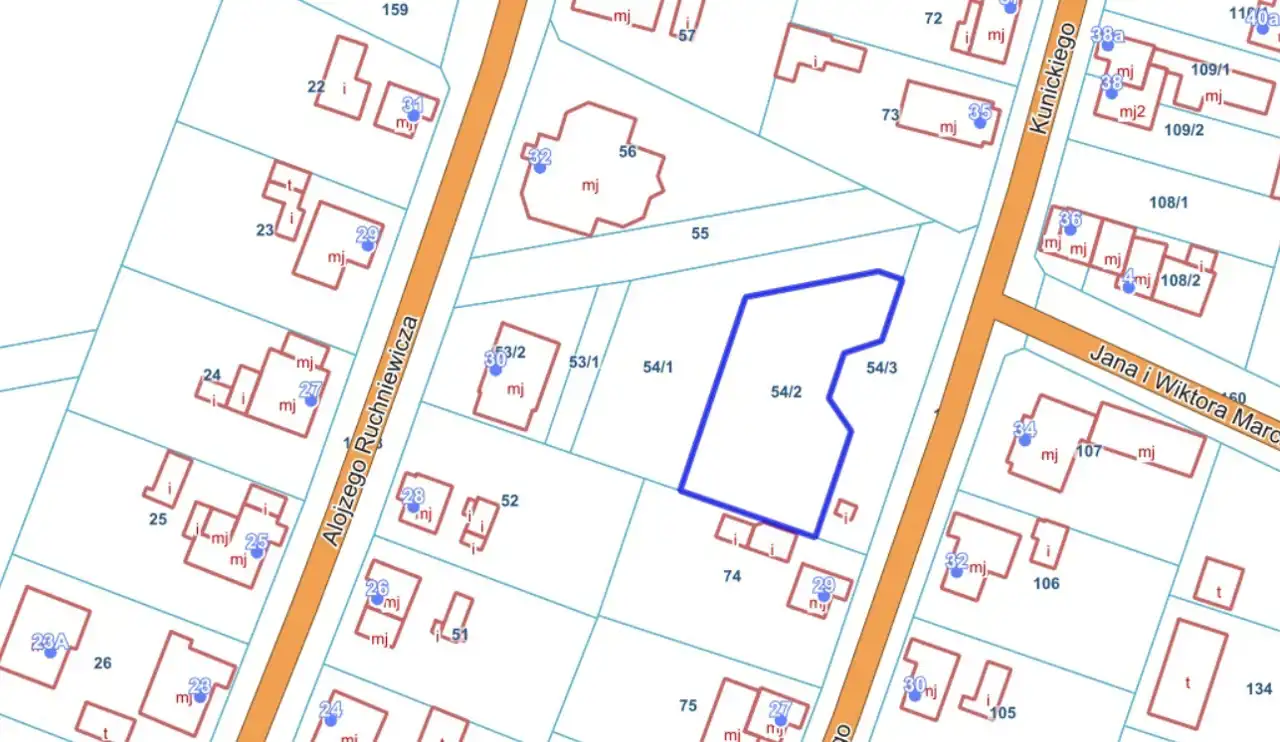 Działki o numerach ewidencyjnych 54/1 oraz 54/2 posiadają łączną powierzchnię 1 580 m² i objęte są miejscowym planem zagospodarowania przestrzennego, co czyni je bezpiecznym i przewidywalnym gruntem pod inwestycję.