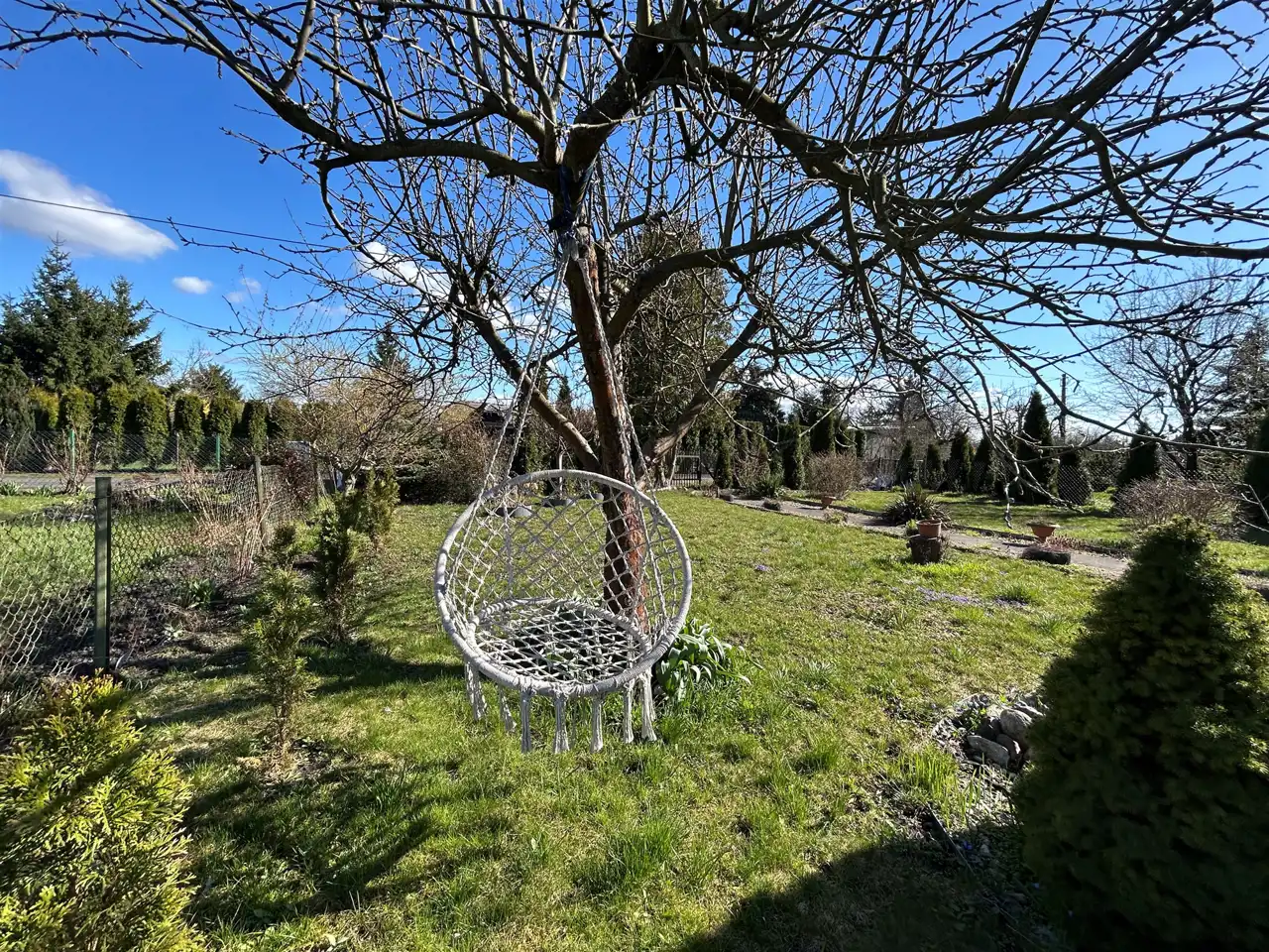 Działka o powierzchni niespełna 500 m² jest w pełni zagospodarowana i przemyślana pod kątem wygody użytkowania. Znajdziesz tu liczne nasadzenia – drzewka i krzewy owocowe, ogródek warzywny oraz wydzieloną przestrzeń rekreacyjną, w tym wykostkowane miejsce pod basen i betonowe ścieżki ułatwiające poruszanie się.