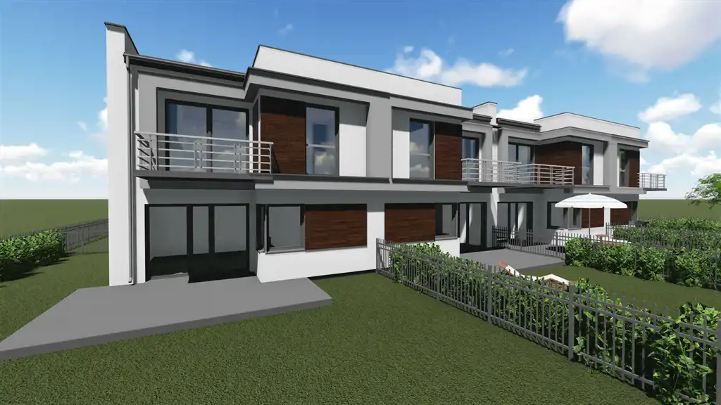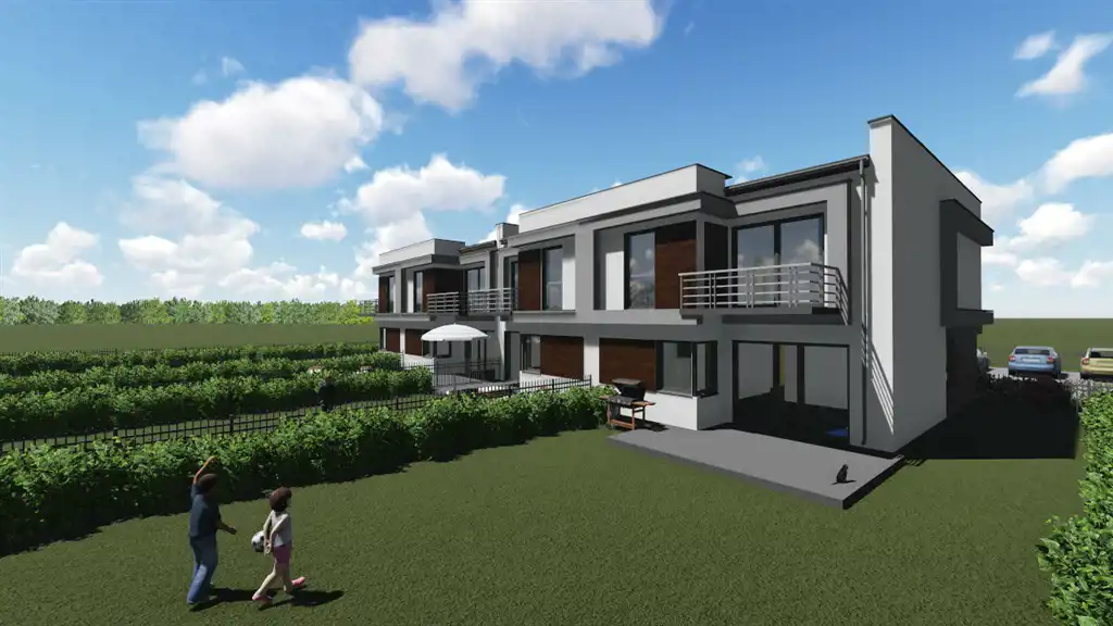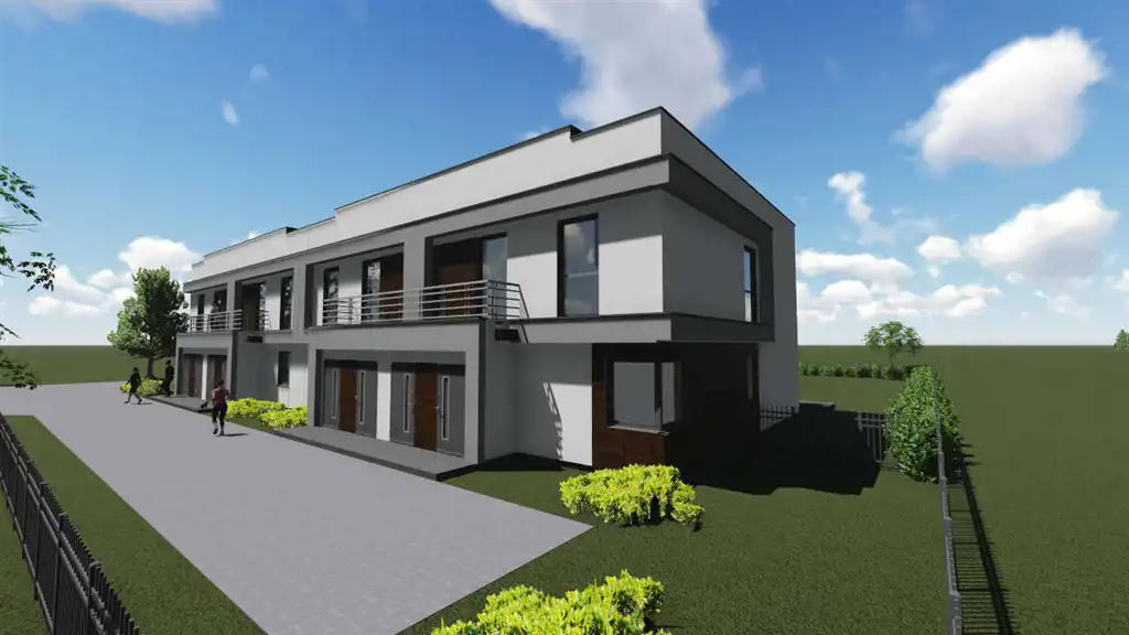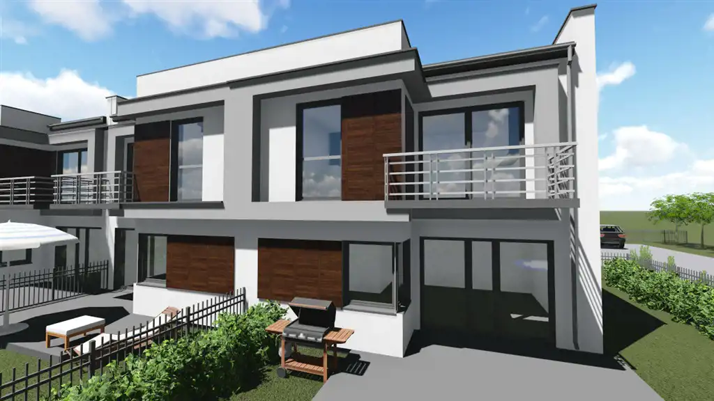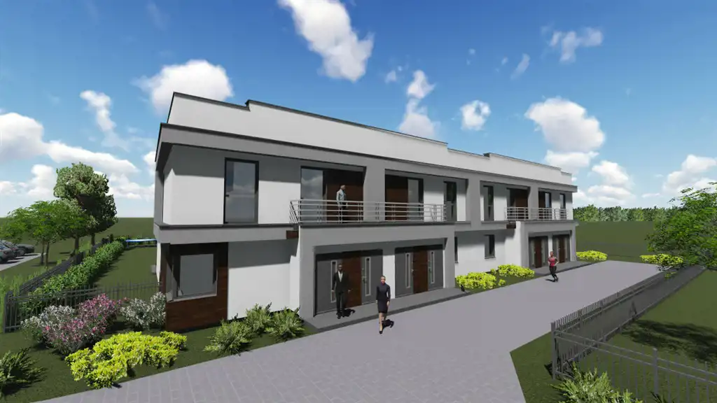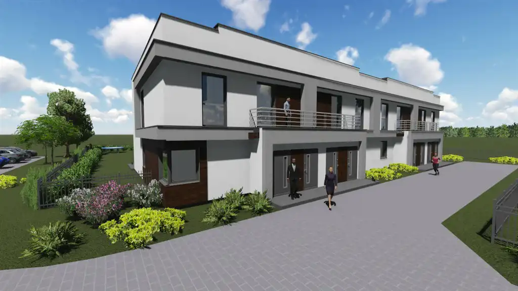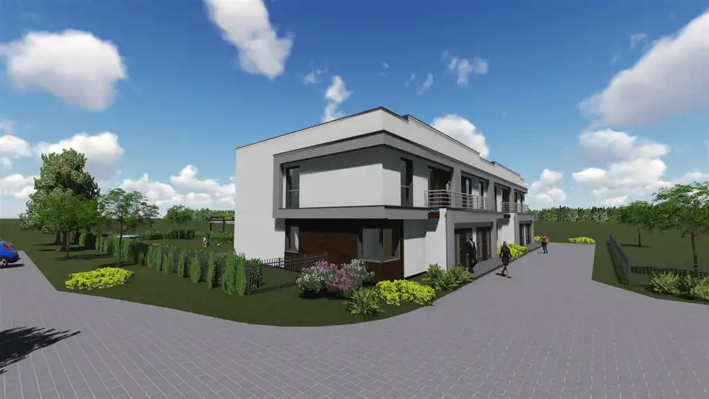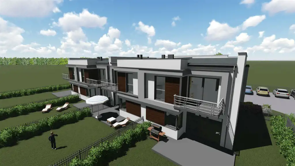 Dużym atutem dla inwestora jest możliwość wykorzystania przygotowanego dla tych nieruchomości opracowanego projektu z nowoczesnymi apartamentami, mieszczącymi się w dwóch budynkach jednorodzinnych w zabudowie szeregowej. Na osiedlu mieścić się może łącznie 16 lokali mieszkalnych oraz budynek garażowy (aktualnie istnieje budynek gospodarczy do adaptacji na garaże) i wydzielone miejsca parkingowe. Architektura budynków wyróżnia się elegancją i nowoczesnością, a jasna kolorystyka elewacji zapewnia inwestycji ponadczasowy wygląd. Idealne usytuowanie względem słońca, przestronne okna oraz ogródki i obszerne tarasy zapewnią mieszkańcom dopływ pozytywnej energii.