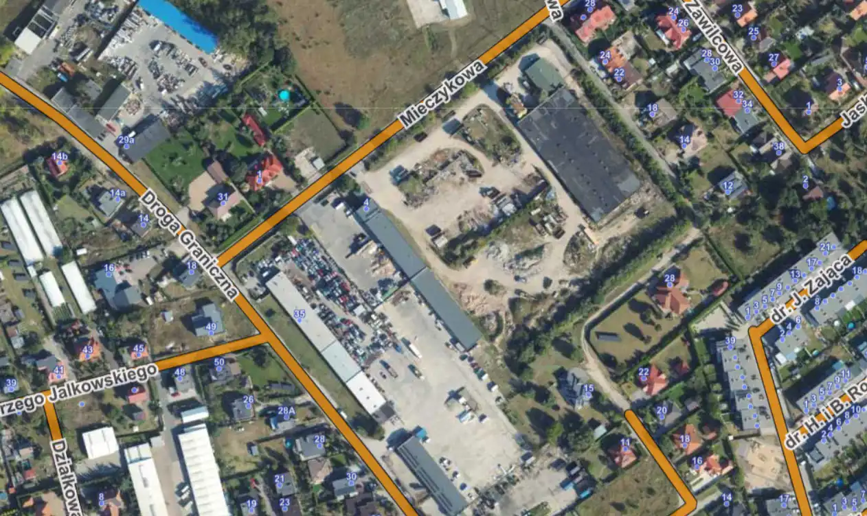 - Dostęp do drogi miejskiej – wygodny wjazd bezpośrednio z ul. Mieczykowej.