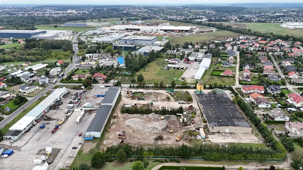 - Zabudowa usługowa – obiekt handlowy, przedszkole, centrum medyczne lub sportowe.