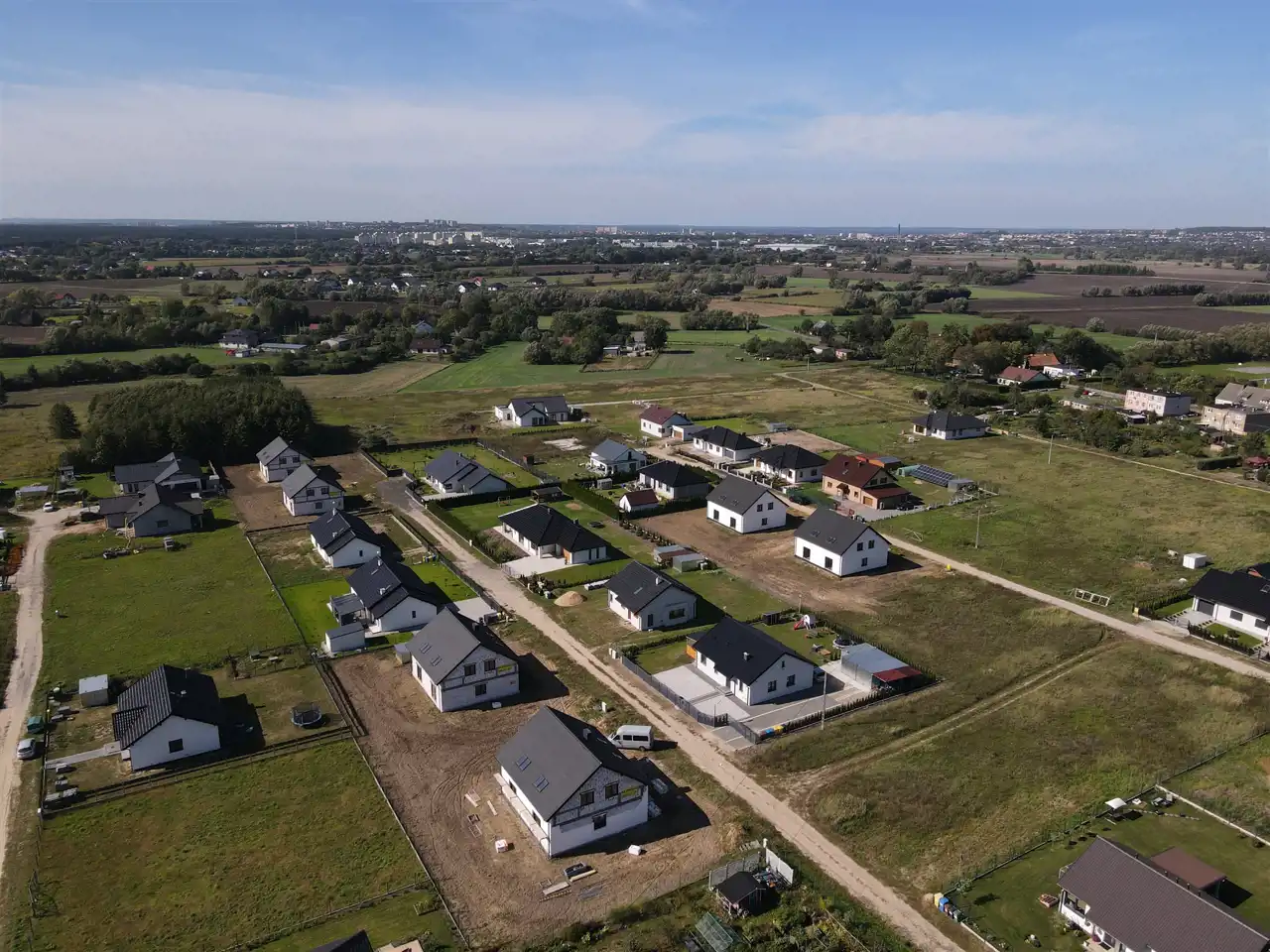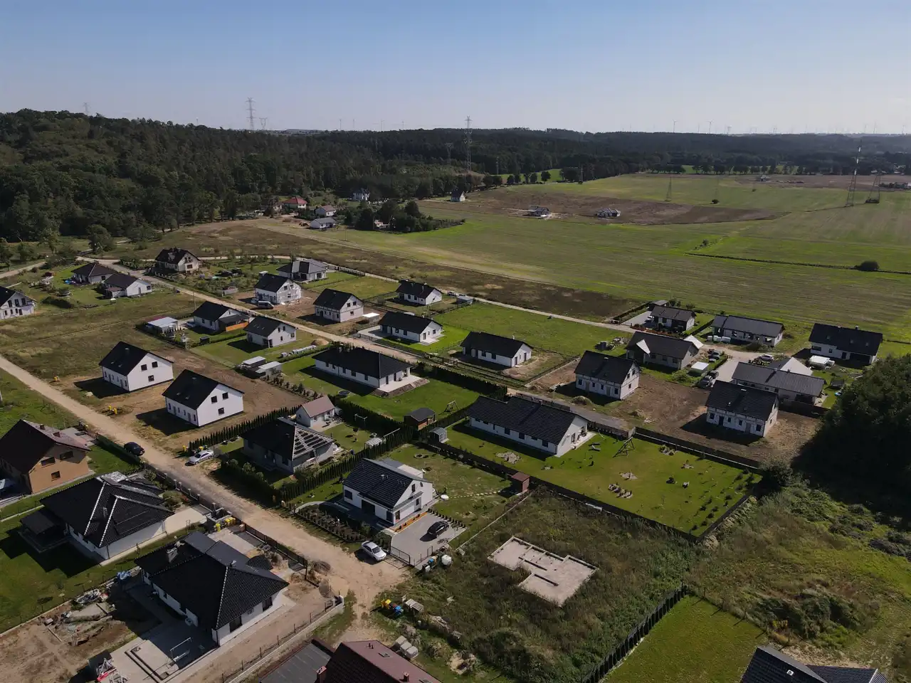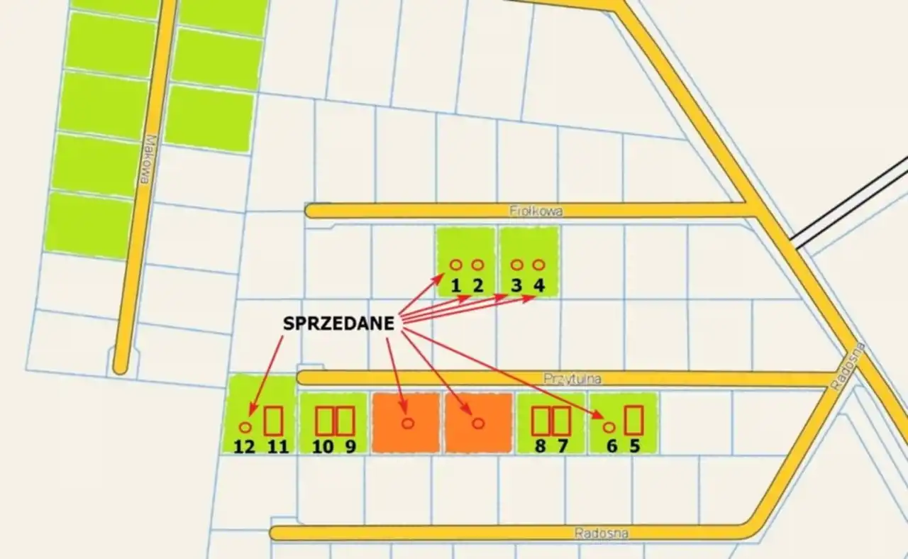 Powierzchnia przynależnej działki do większości domów wynosi około 500m2.