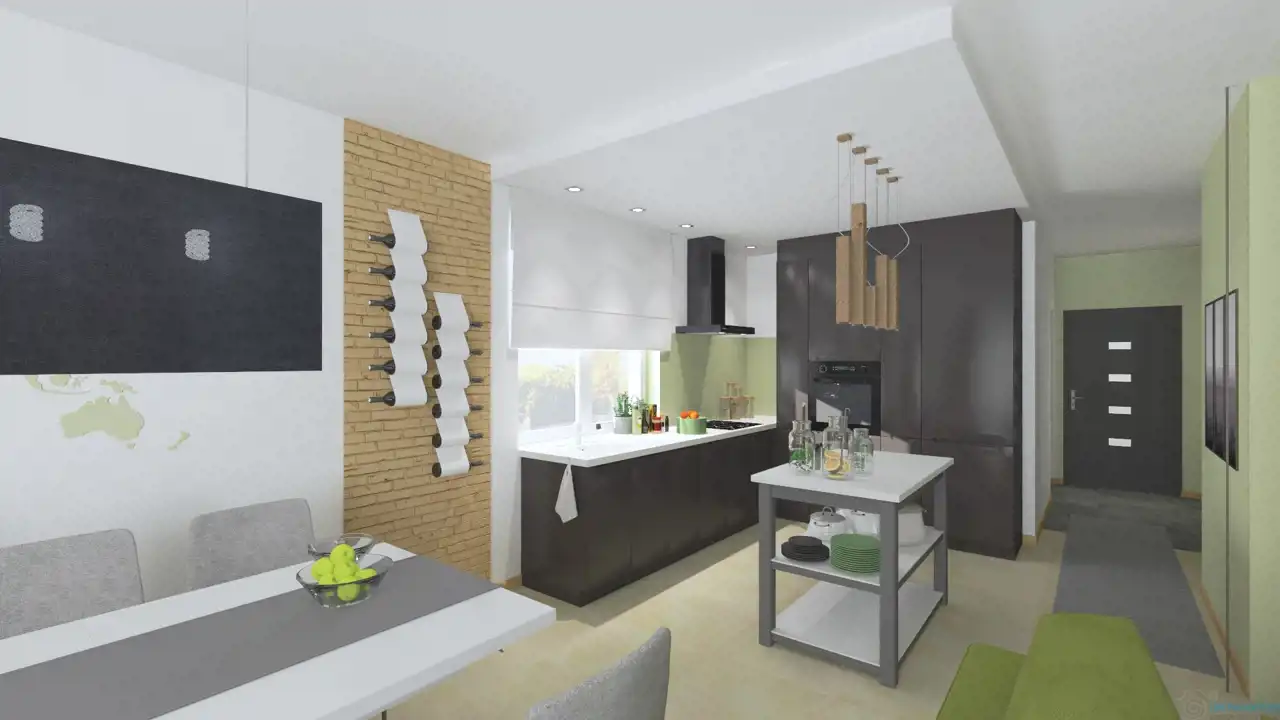 - Możliwość zagospodarowania powierzchni pod schodami na piętro – od strony salonu lub od strony pomieszczenia gospodarczego;
