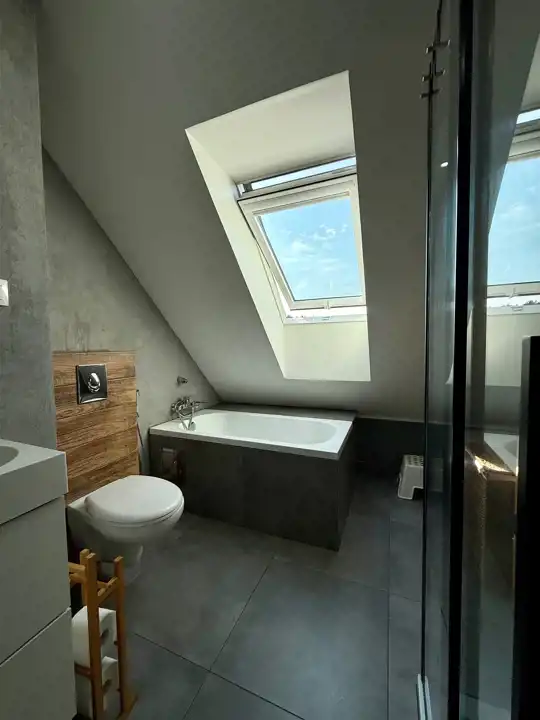 -trzy ustawne sypialnie (w tym jedna z garderobą – Twoja osobista strefa komfortu),-łazienkę oraz osobną pralnię, która znacząco ułatwia codzienne obowiązki.