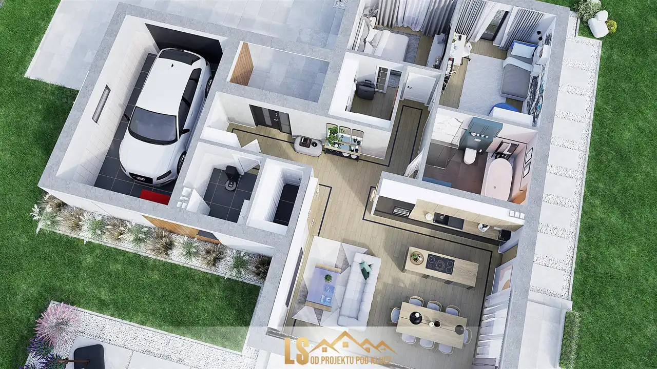 - garaż w bryle budynku 24,55 m2