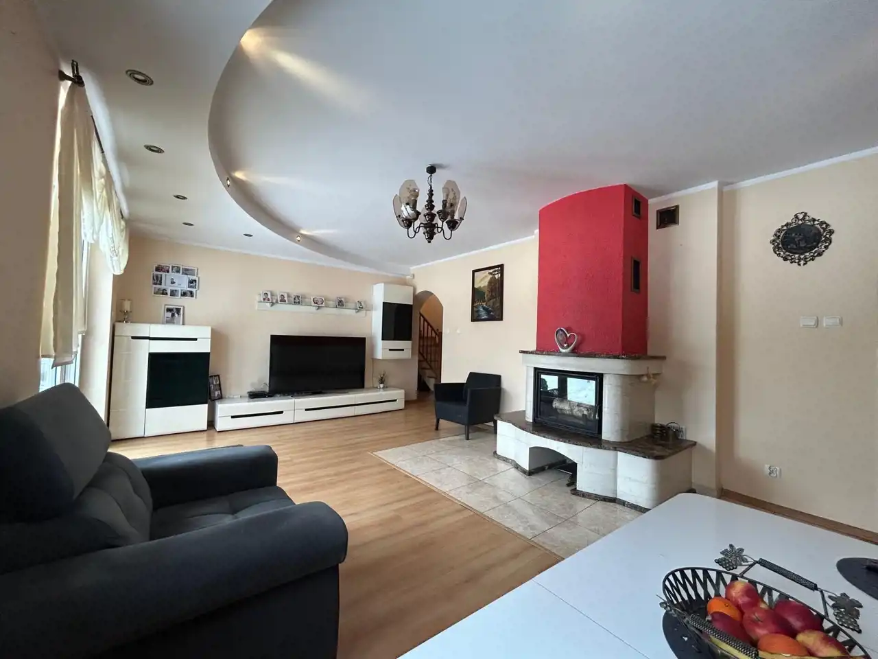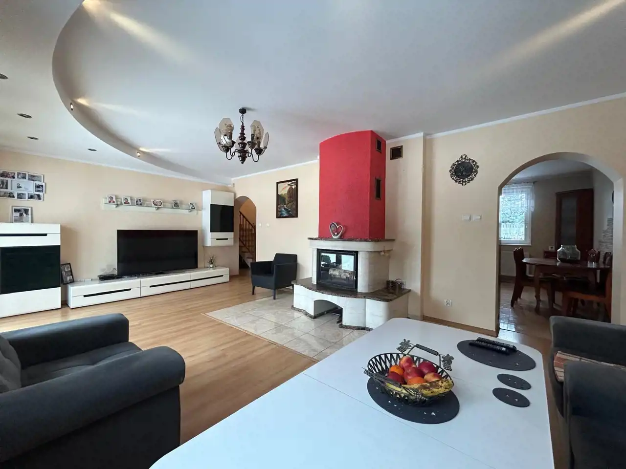 przestronny salon z kominkiem z płaszczem wodnym – idealny na zimowe wieczory