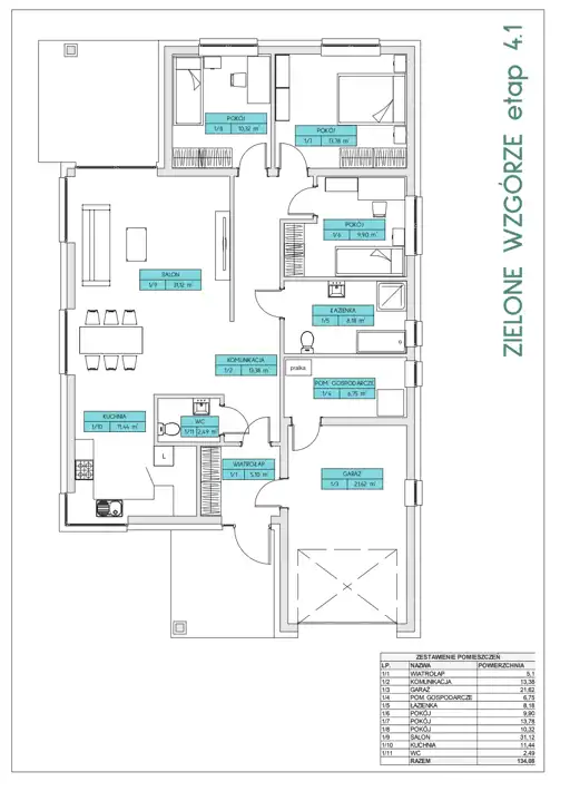 - Charakterystyka mieszkania 134.08 m2, 4 pokoje, do wykończenia wewnątrz