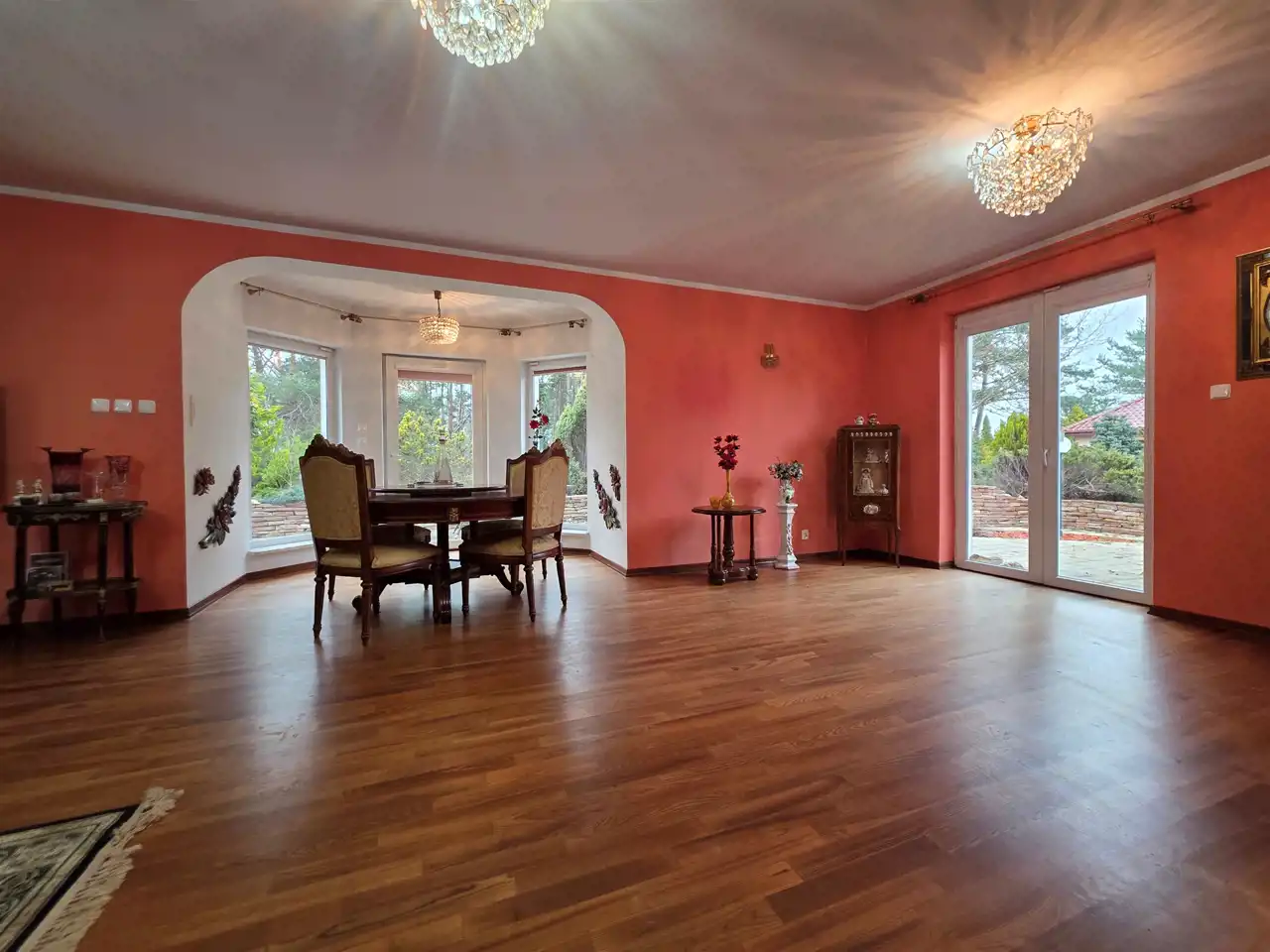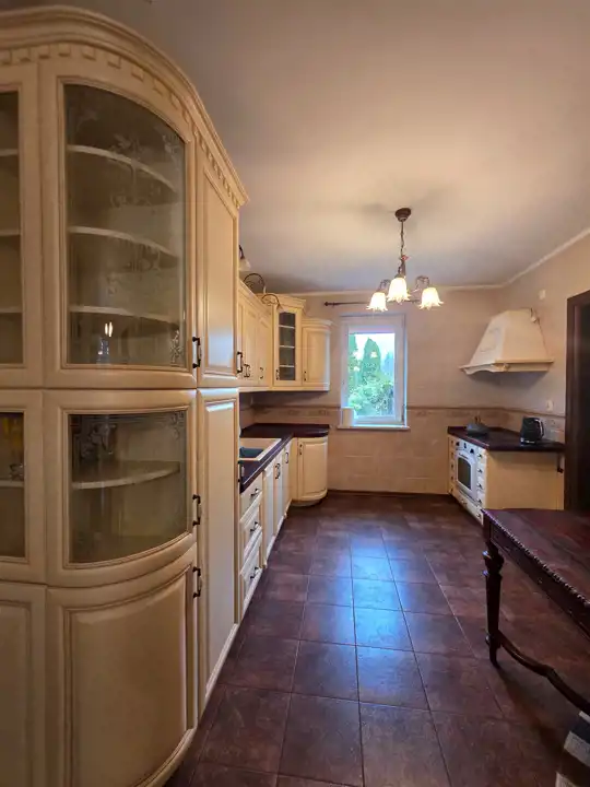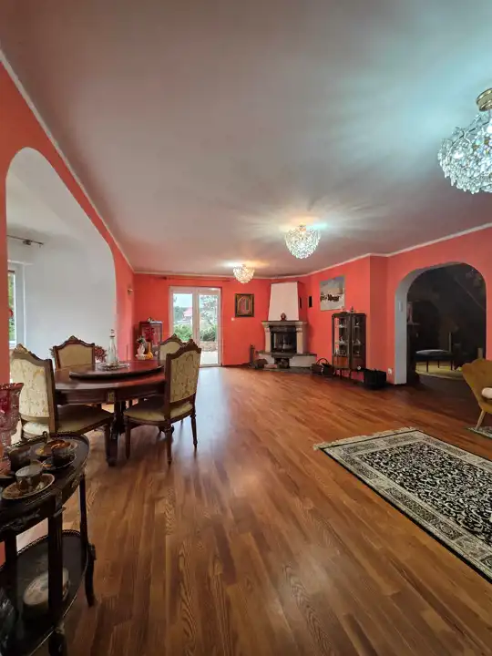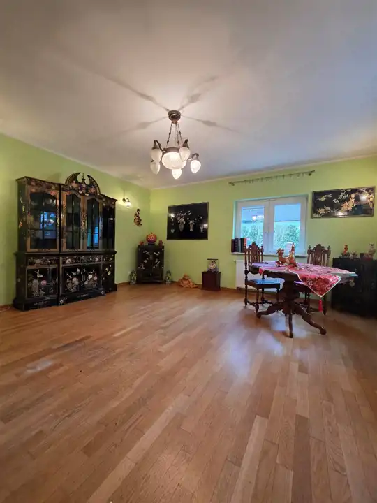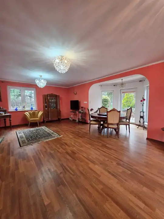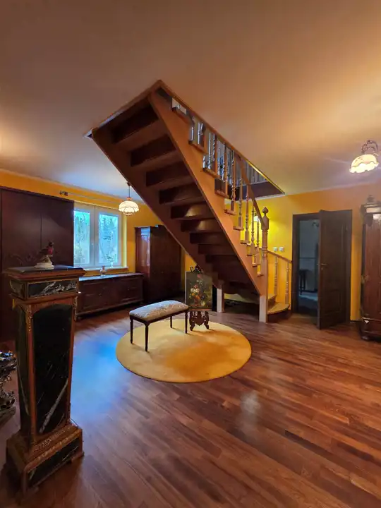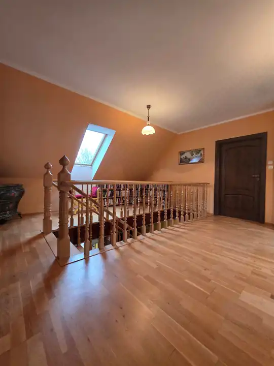 Nieruchomość usytuowana jest na działce o powierzchni 1418 m2 . Dom wybudowany według własnego projektu o powierzchnia użytkowej 216,30 m2 i oferuje przestronny układ pomieszczeń :