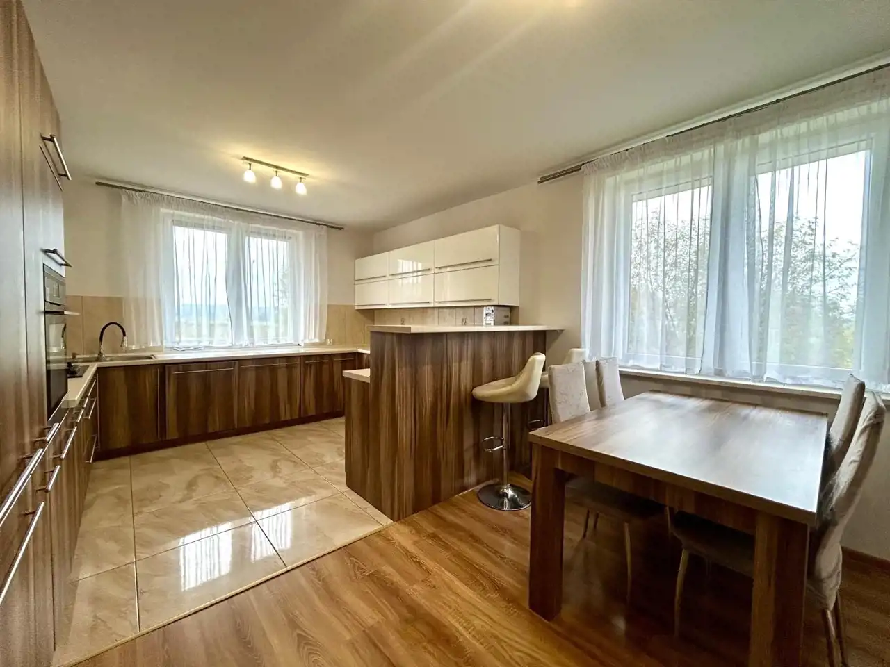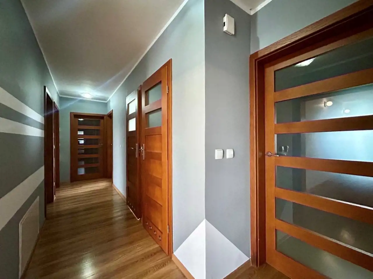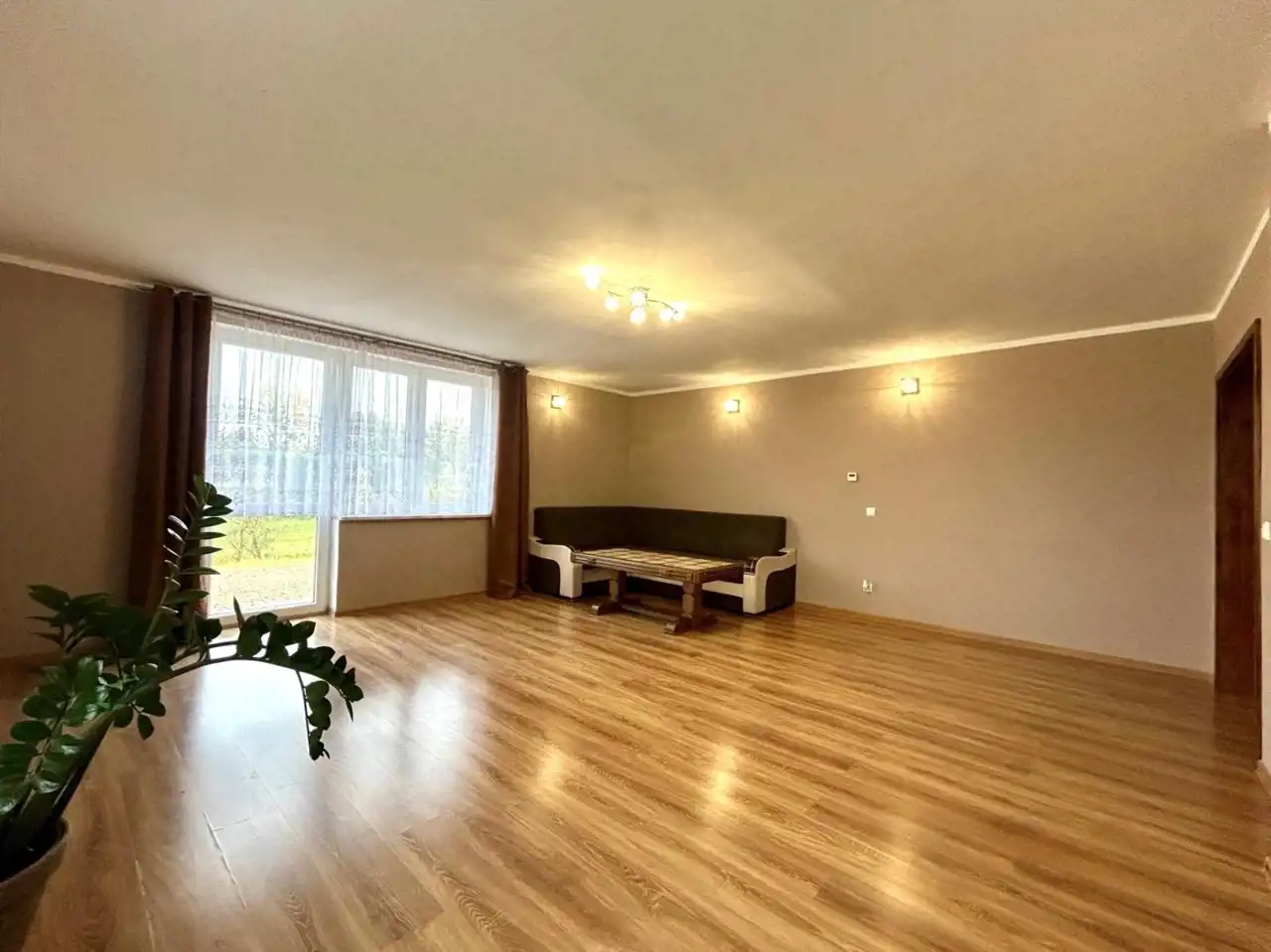 Dom o powierzchni całkowitej 141 m² (112 m² powierzchni użytkowej) został wybudowany w 2014 roku z wysokiej jakości materiałów. Zadbany, funkcjonalny i dobrze doświetlony, oferuje przestrzeń idealną zarówno dla rodziny, jak i dla osób pracujących zdalnie. Wewnątrz znajdują się cztery ustawne pokoje, przestronna kuchnia z jadalnią, łazienka, osobne WC, przedpokój oraz wiatrołap. W bryle budynku mieści się garaż, a także kotłownia z dodatkowym miejscem do przechowywania.