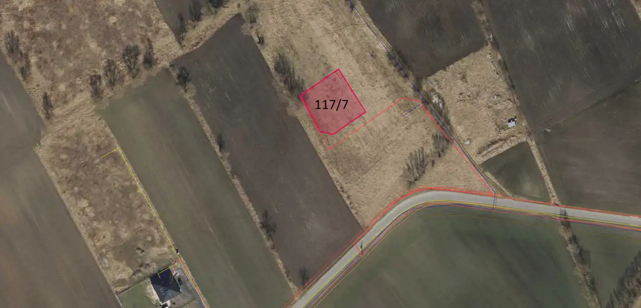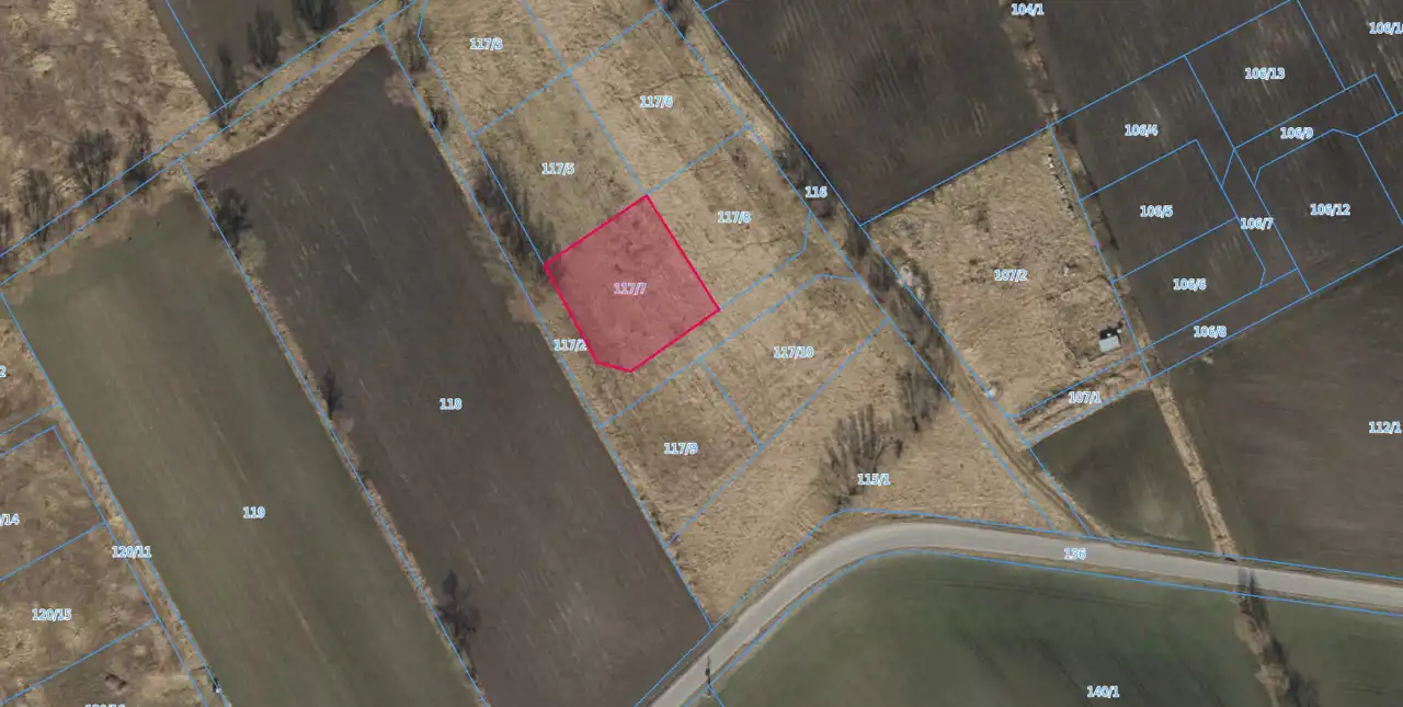 Oferowana działka nr 117/7 ma powierzchnię 1287 m2. Kupujący nabędzie również udziały w drodze dojazdowej, oznaczonej nr 117/2.