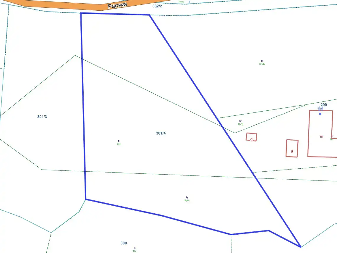 Działka ma nieregularny kształt, jest dobrze nasłoneczniona i posiada dostęp do drogi publicznej – znajduje się bezpośrednio przy ulicy Parowej.