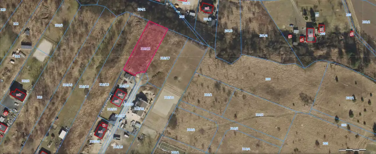 - Media Woda: na działce; Kanalizacja: tak; Prąd: na działce; Gaz: brak